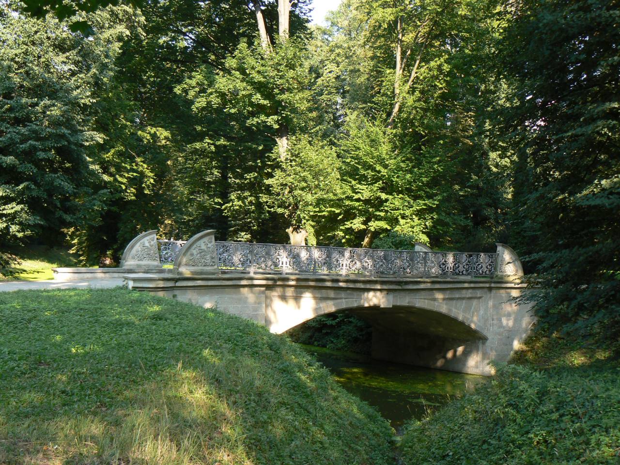 Další obrázek, další krásný park. Tenhle most najdeme v jednom z našich nejkrásnějších parků - v Podzámecké zahradě v Kroměříži. V parku, kde jsou krásné rybníky - Divoký, Dlouhý nebo Chotkův rybník, nádherné prastaré stromy, obzvlášť platany, i romantické stavby - Pompejská kolonáda, Čínský pavilón nebo Gloriet. Dřív tu tahle krása byla jen pro potěchu biskupů a arcibiskupů, ale dnes už tu je pro potěchu všech, kteří ji dokáží vnímat.