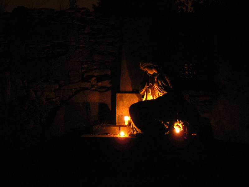 Plamínek odhání temnotu a další mu přichází na pomoc... svitem společným tak odhalují krásu, v níž proměnil dávný mistr beztvarý kámen pro jiného. Jen čas ví, jak nakonec skončil a kdo jak ozdobil místo jeho posledního odpočinku... čas a tajuplná dívka...