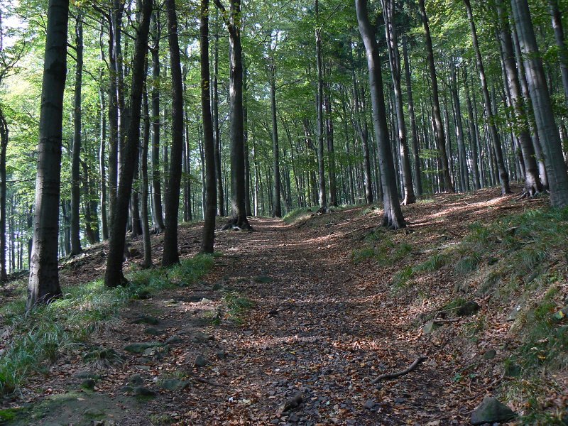 Na tomto obrázku jsme "popoběhli" o pár desítek kilometrů dál, ale jsme stále v Lužických horách, na úbočí vrchu Studence, na němž si odborníci nejvíce cení zachovalé takzvané květnaté bučiny. Rostou na něm i vzácné rosliny a na jeho skalách a kamenných mořích žijí i kamzíci.