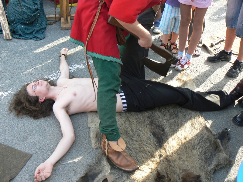 A jak se čtvrcení provádí? To takhle odsouzenci natáhnete nohu, zapřete ji svou, trhnete, vykloubíte a...
