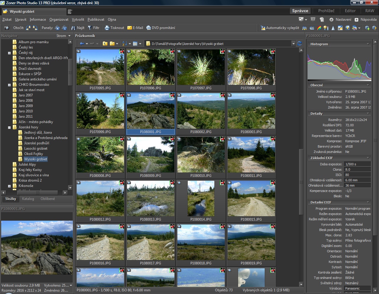 Příjemné je i to, že při instalaci nového vydání programu není přepsáno vydání staré. Já mám rád Zoner Photo Studio s pořadovým číslem 10, teď jsem si však nainstaloval na vyzkoušení nové Zoner Photo Studio 13. Instaluje se do nového adresáře a vytváří si vlastní zápisy v registru, takže tím instalace staršího vydání 10 není nijak dotčena.