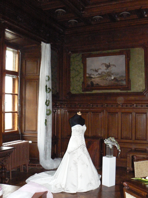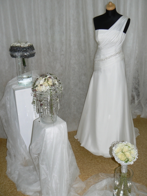 Sousední místnost je věnována svatební výzdobě a kromě krásných svatebních šatů tu obdivujeme i obrovská květinová aranžmá.