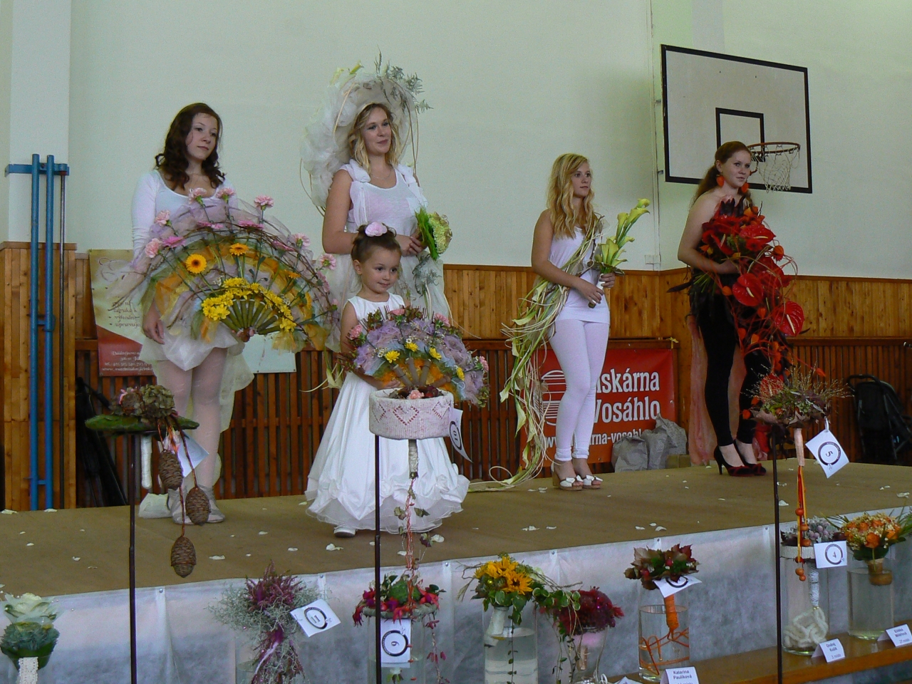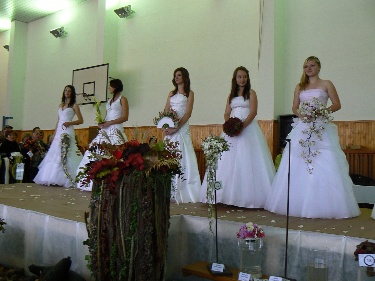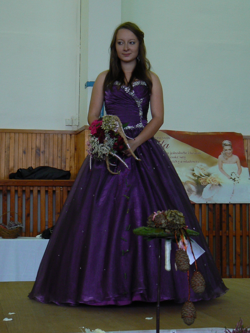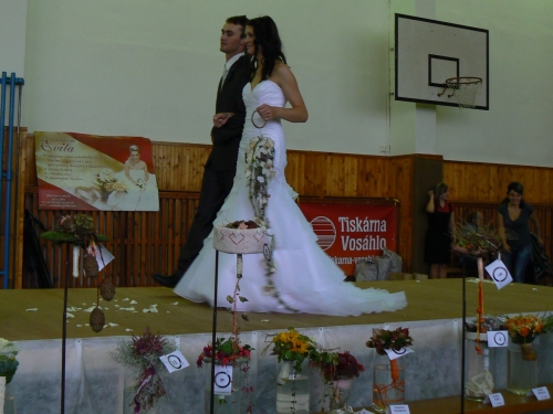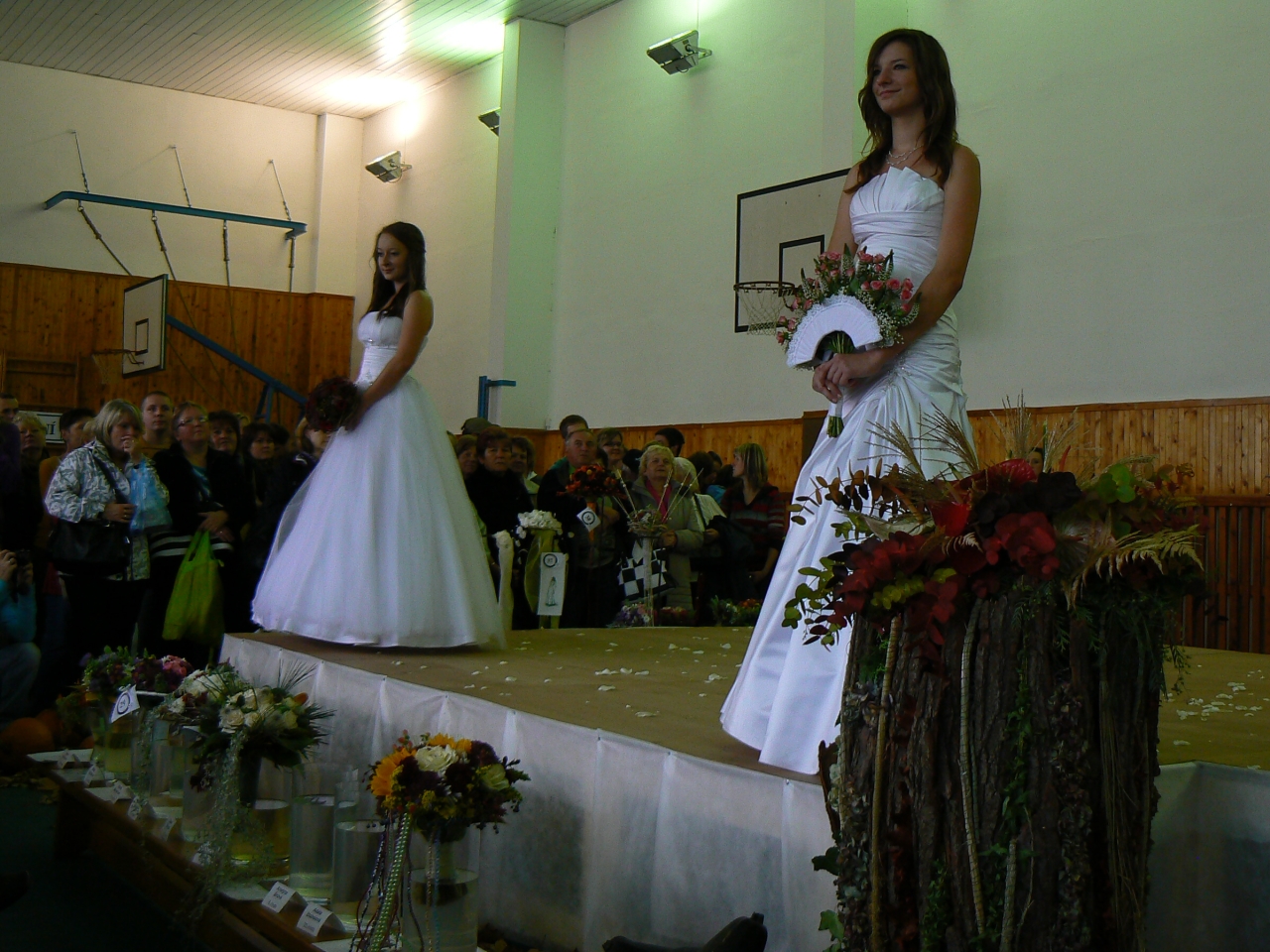 Opouštíme společně zámek, procházíme znovu parkem a tentokrát je našim cílem prostorný sál v ryze funkční budově z doby socialismu. Různé nářadí - kruhy, žebřiny, šplhací lana, větší množství basketbalových košů - dává tušit, že ve všedních tu padají jen strohé povely: "Poklusééém klus." Pííísk pííísk, pííísk pííísk "Kolena nahoru... běžím běžím, neflákám se, jedu jedu jedu". Dnes však má sál mnohem vznešenější poslání - slouží jako výstavní síň pro spoustu krásných kytic, aranžmá, nazdobených barevných dýní a mnohého dalšího. Vévodí mu květinami lemované pödium protáhlého obdélného tvaru s typickým čtvercovým rozšířením na konci - molo, jaké se používá na módních přehlídkách. Jemu však teď vládnou mnohem nesmrtelnější modely, než jaké jsou k vidění na módních týdnech v Miláně, Paříži nebo New Yorku.