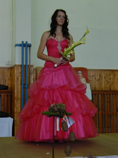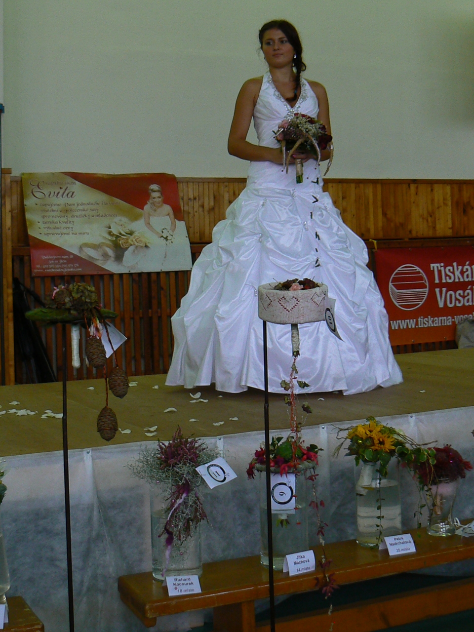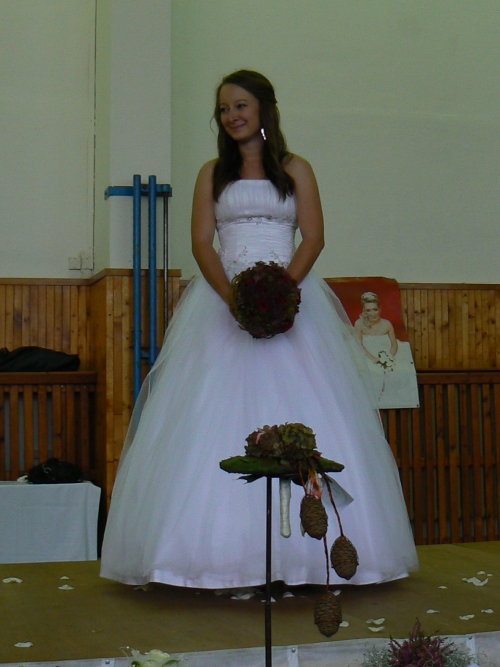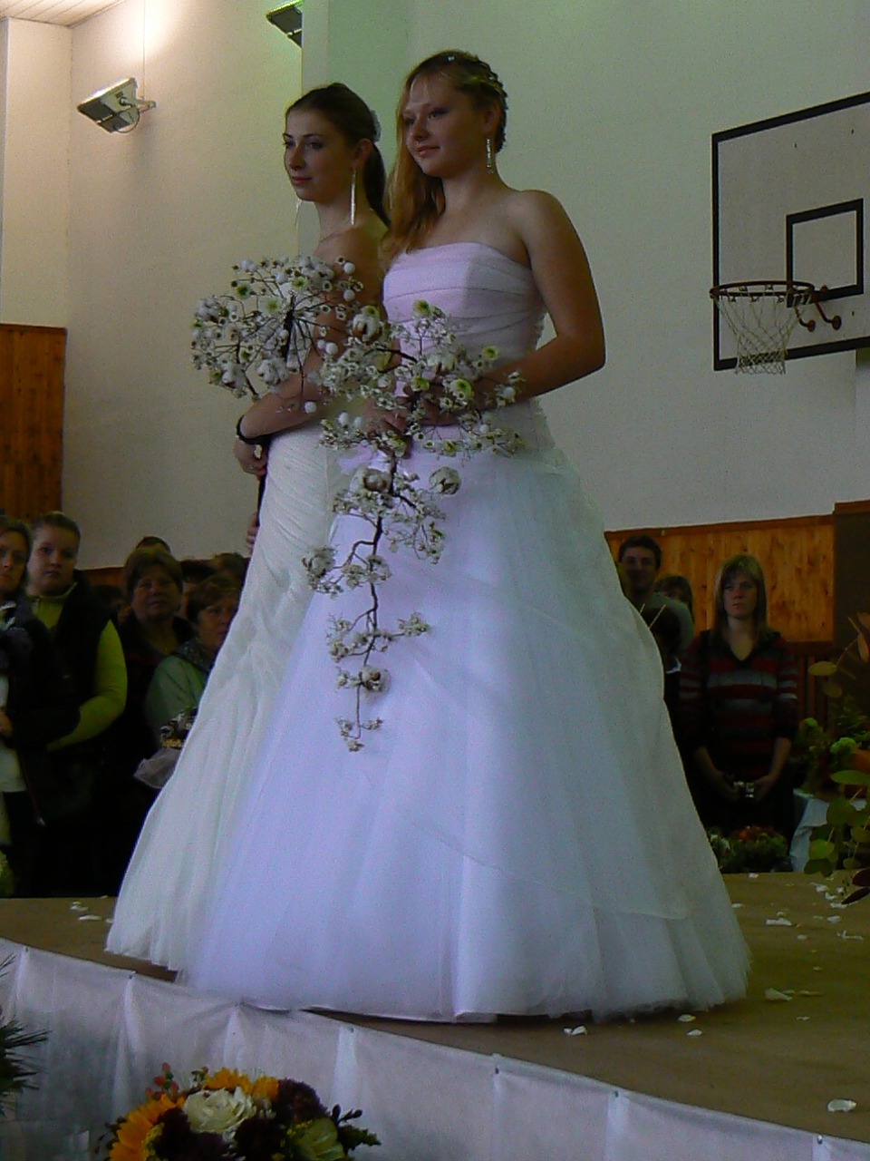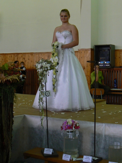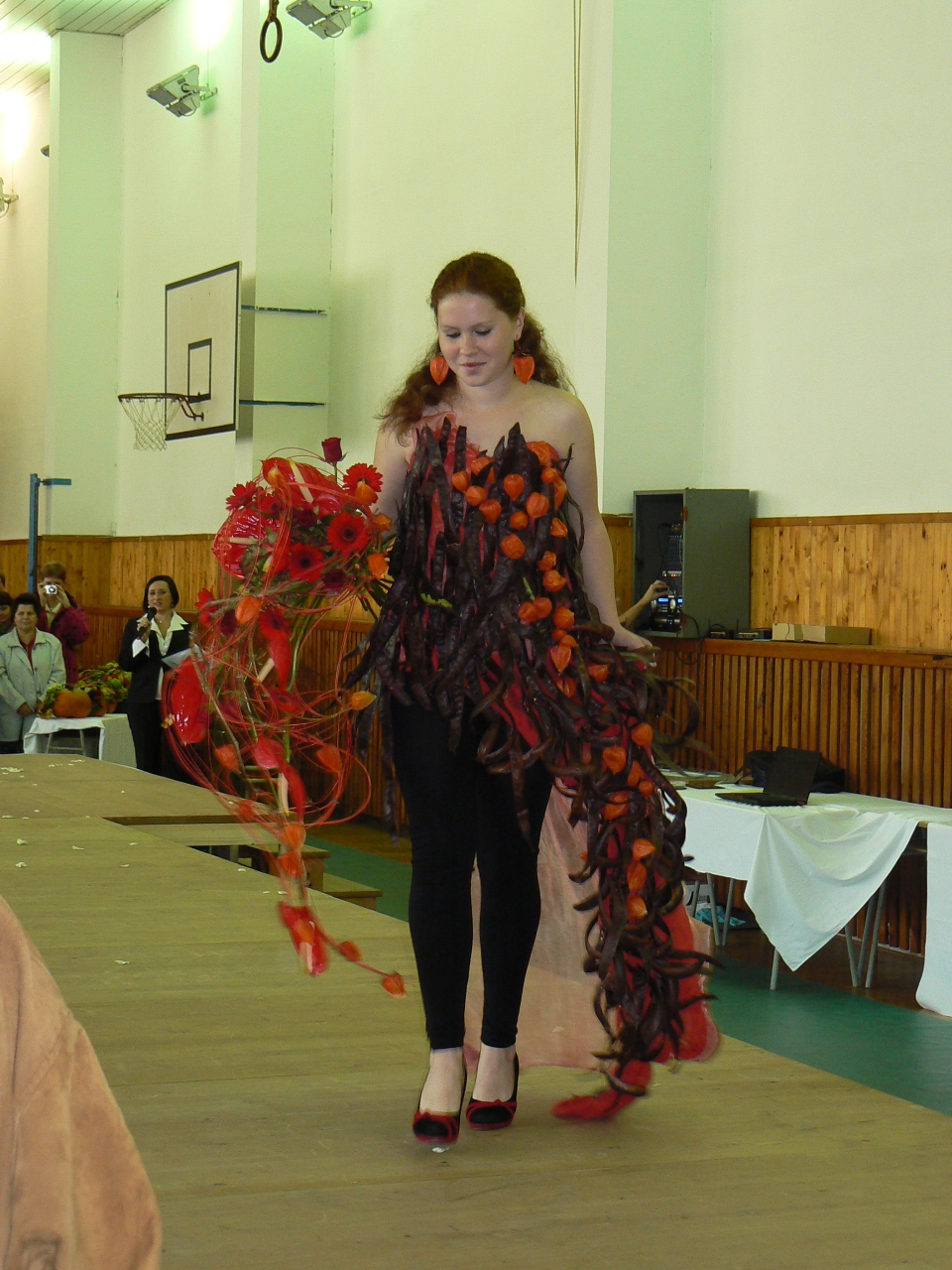 Opouštíme společně zámek, procházíme znovu parkem a tentokrát je našim cílem prostorný sál v ryze funkční budově z doby socialismu. Různé nářadí - kruhy, žebřiny, šplhací lana, větší množství basketbalových košů - dává tušit, že ve všedních tu padají jen strohé povely: "Poklusééém klus." Pííísk pííísk, pííísk pííísk "Kolena nahoru... běžím běžím, neflákám se, jedu jedu jedu". Dnes však má sál mnohem vznešenější poslání - slouží jako výstavní síň pro spoustu krásných kytic, aranžmá, nazdobených barevných dýní a mnohého dalšího. Vévodí mu květinami lemované pödium protáhlého obdélného tvaru s typickým čtvercovým rozšířením na konci - molo, jaké se používá na módních přehlídkách. Jemu však teď vládnou mnohem nesmrtelnější modely, než jaké jsou k vidění na módních týdnech v Miláně, Paříži nebo New Yorku.