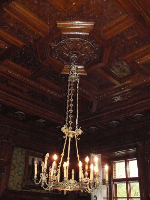Nejkrásnější je nádherná místnost se stěnami, obloženými vyřezávaným táflováním, dveřmi se zdobenými sloupky, nádherně vyřezávaným stropem i několika obrazy.