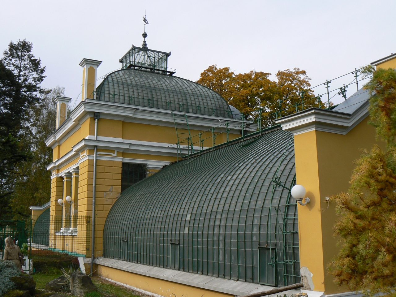 Oranžérie má tři části - uprostřed prostorný a vysoký rizalit, k němuž přiléhají dvě ještě prostornější části. Všechny prostory jsou navzájem oddělené prosklenými dveřmi, takže může v každé panovat jiná teplota i vlhkost prostředí. Jsou tu nadělané různé skály, jezírka a všude bují spousta zeleně, pečlivě popsané mnoha cedulkami.