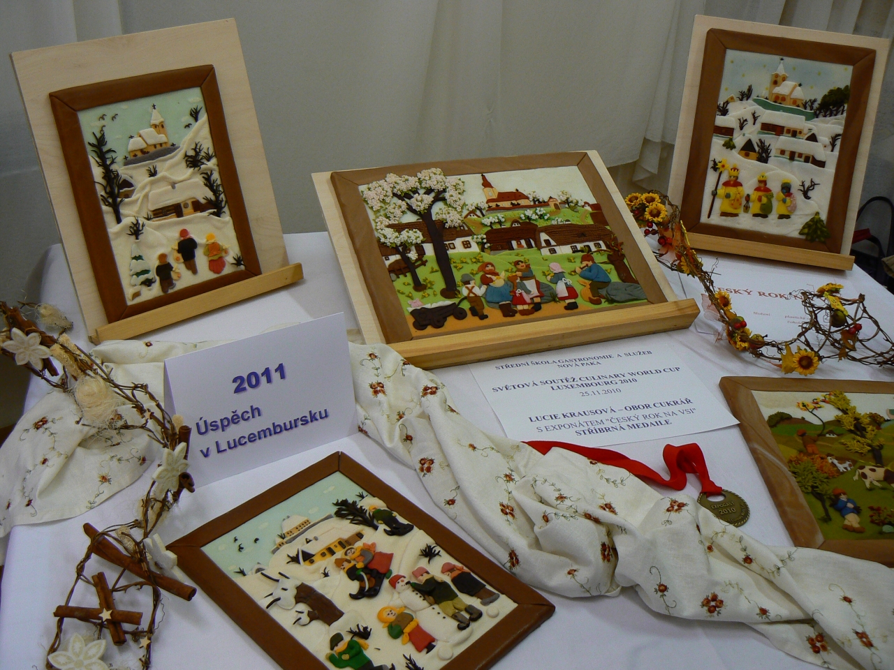 A především z téhož materiálu vytvořené úžasné obrázky, inspirované obrazy Josefa Lady, Rok na vsi, za které jejich autorka Lucie Krausová ze Školy gastronomie a služeb v Nové Pace získala stříbrnou medaili na Gastronomické výstavě v Lucemburku.