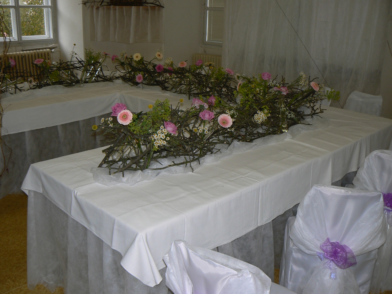 A najdeme tu dokonce i skvostně ozdobený stůl na svatební hostinu.