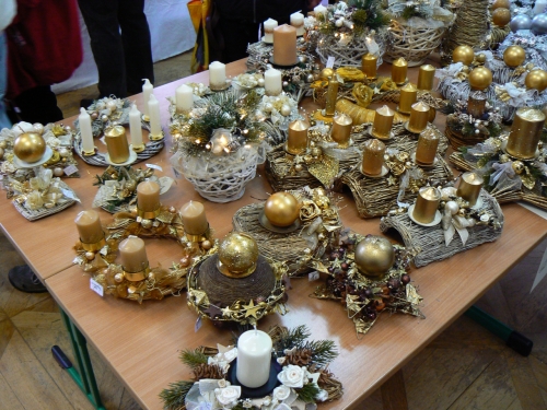 Zlaté, červené, zelené, stříbrné - tolik různých vánočních věnečků a ozdůbek tu je, až oči přecházejí.
