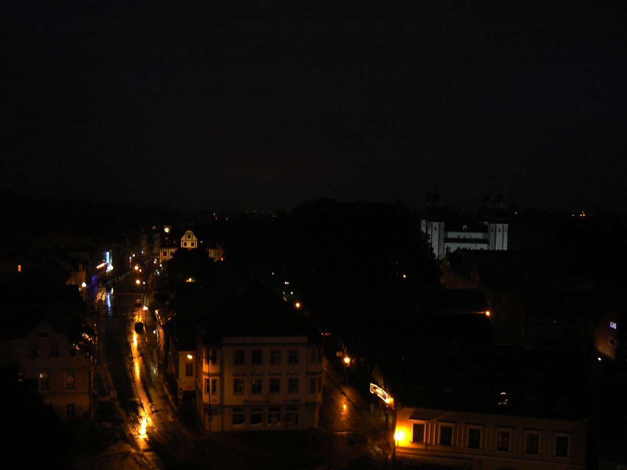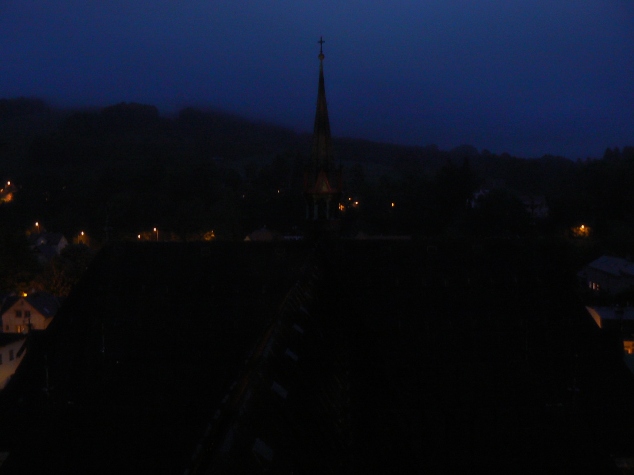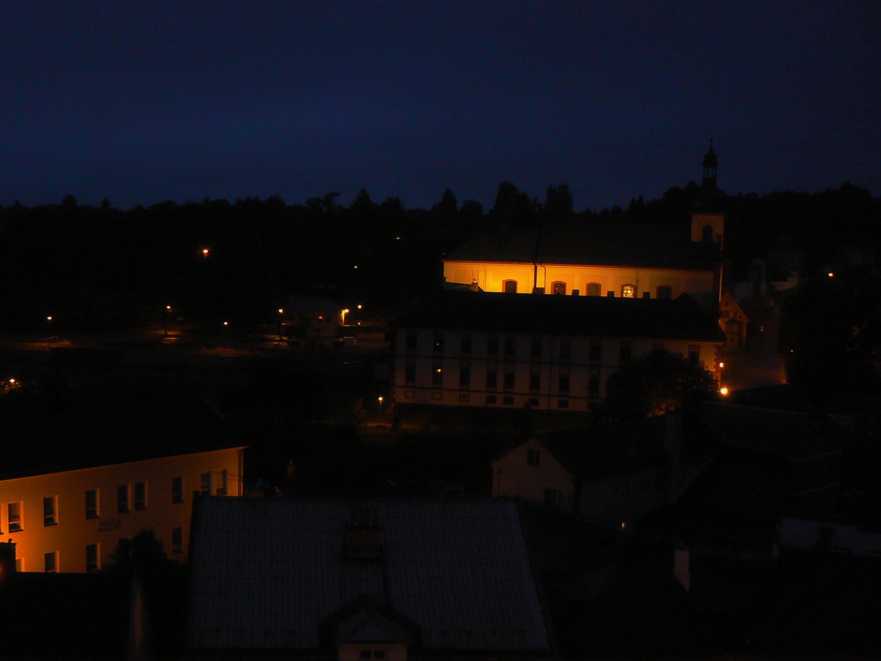 Při pohledu z vedlejšího okna padne náš zrak na nedaleký klášter, v němž má své důstojné sídlo Krkonošské muzeum a na klášterní kostel svatého Augustina, jehož okna dnes také září v temnotě noci.