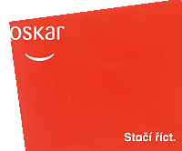 Mobilní operátor Oskar má pěkný znak - hezky červený a zdá se, že se směje. Na koho? Nu, asi na své zákazníky.