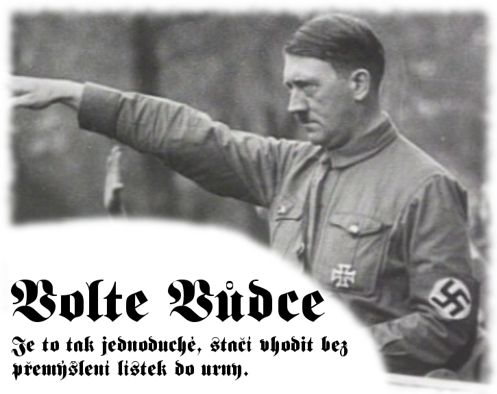 Kdo viděl na mé úvodní stránce obrázek s Adolfem Hitlerem a nápisem Volte Vůdce a zná mě, asi byl upřímně šokován. Kdo mě nezná, určitě si na