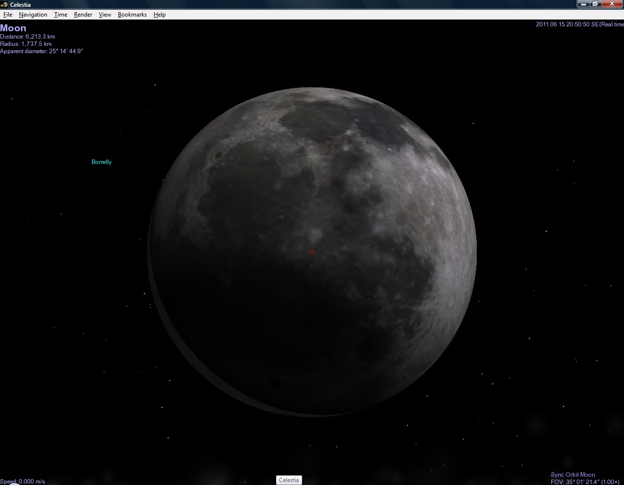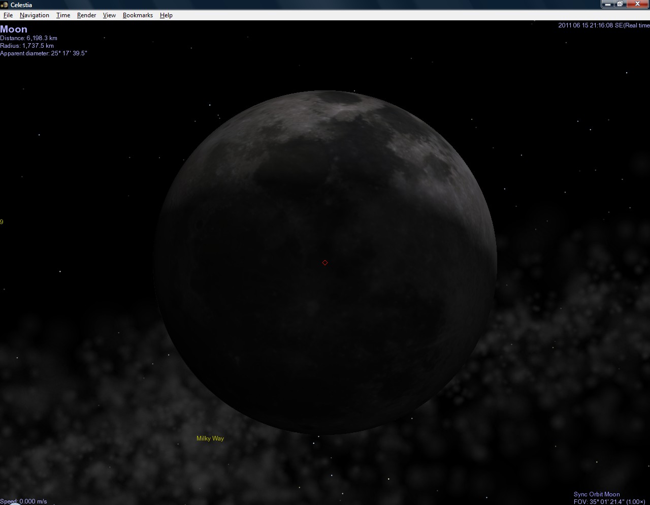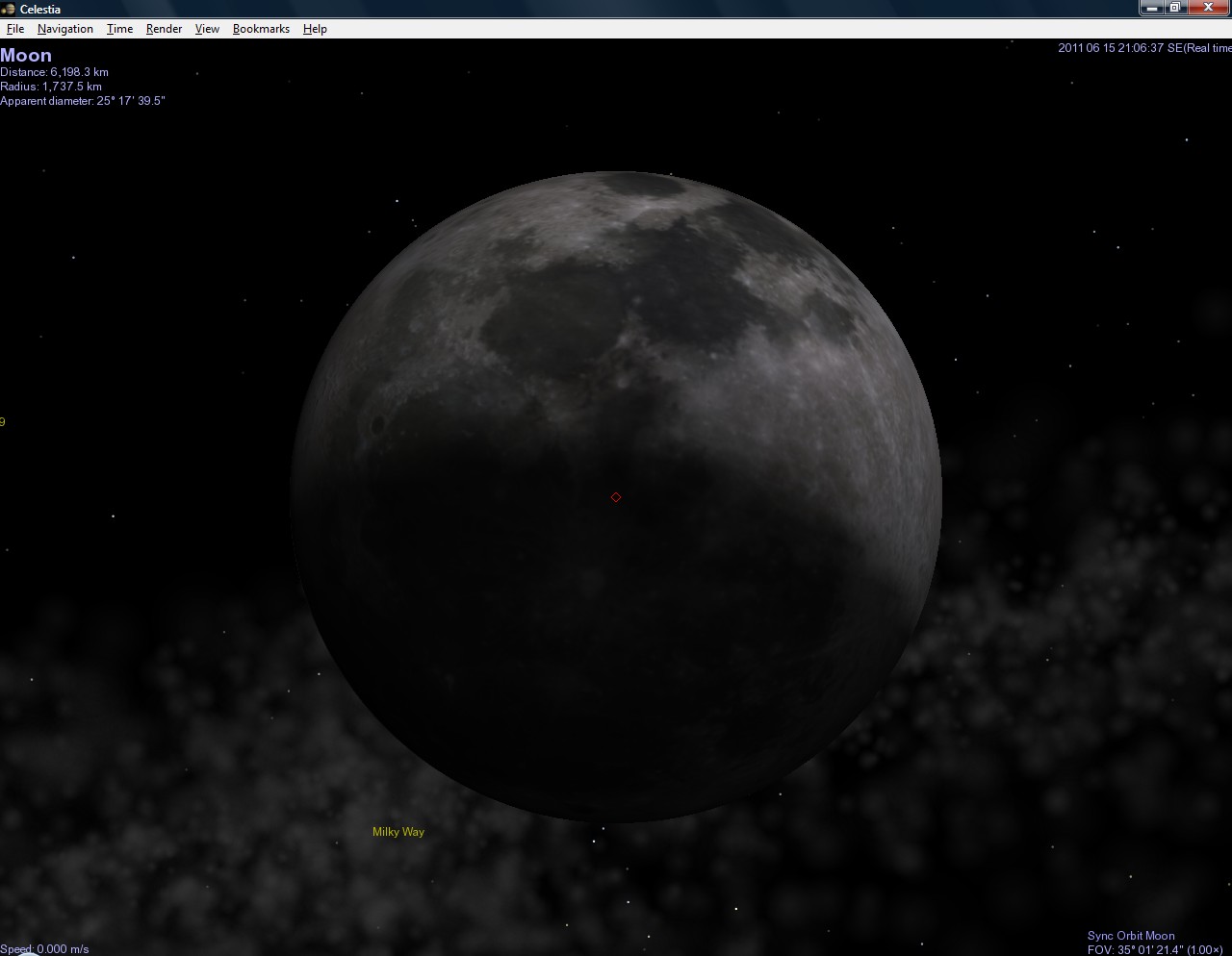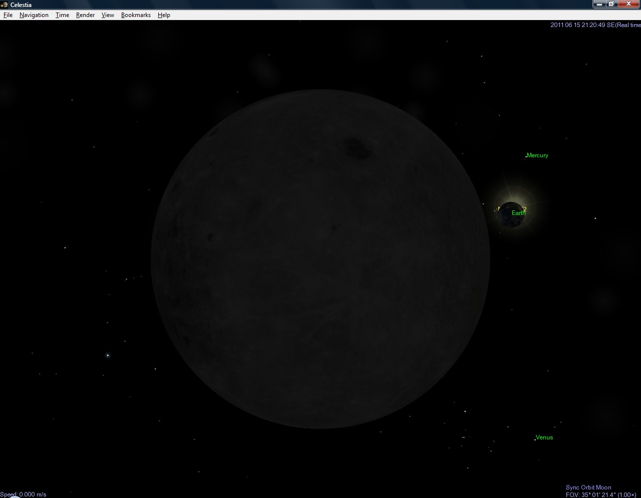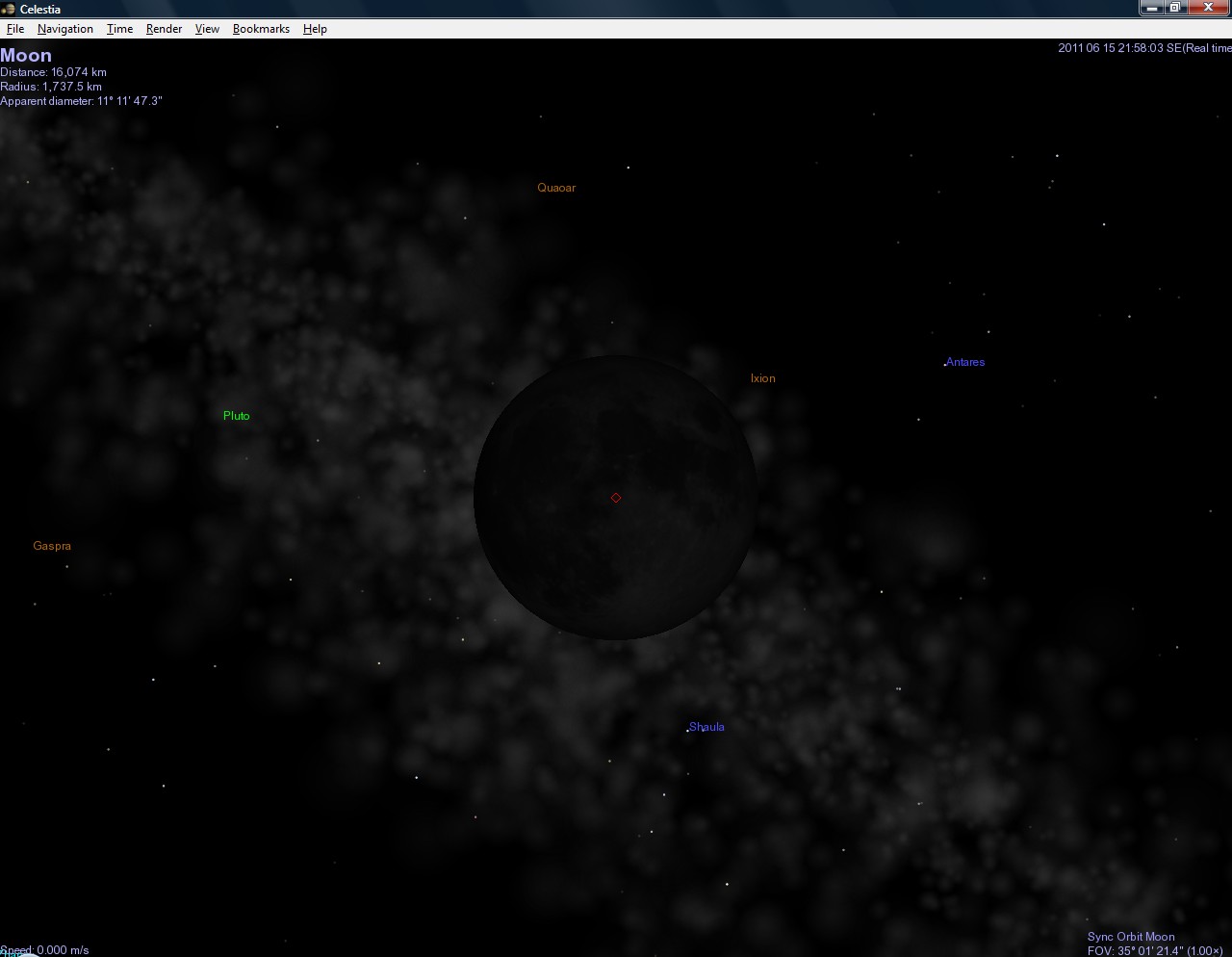 Naštěstí existují šikovní lidé, kteří vytváří úžasné programy. Jedním z nich je i astronomický program jménem Celestia, který - pokud stránka ještě nezanikla - najdete na stránce http://www.shatters.net/celestia. Ten dovede úžasně zobrazovat planety, jejich měsíce, hvězdy, různé galaxie a dokonce vzácně i některé planety v jiných hvězdných soustavách. A tak jsem ho spoustil a počátek zatmění sleduji v něm.