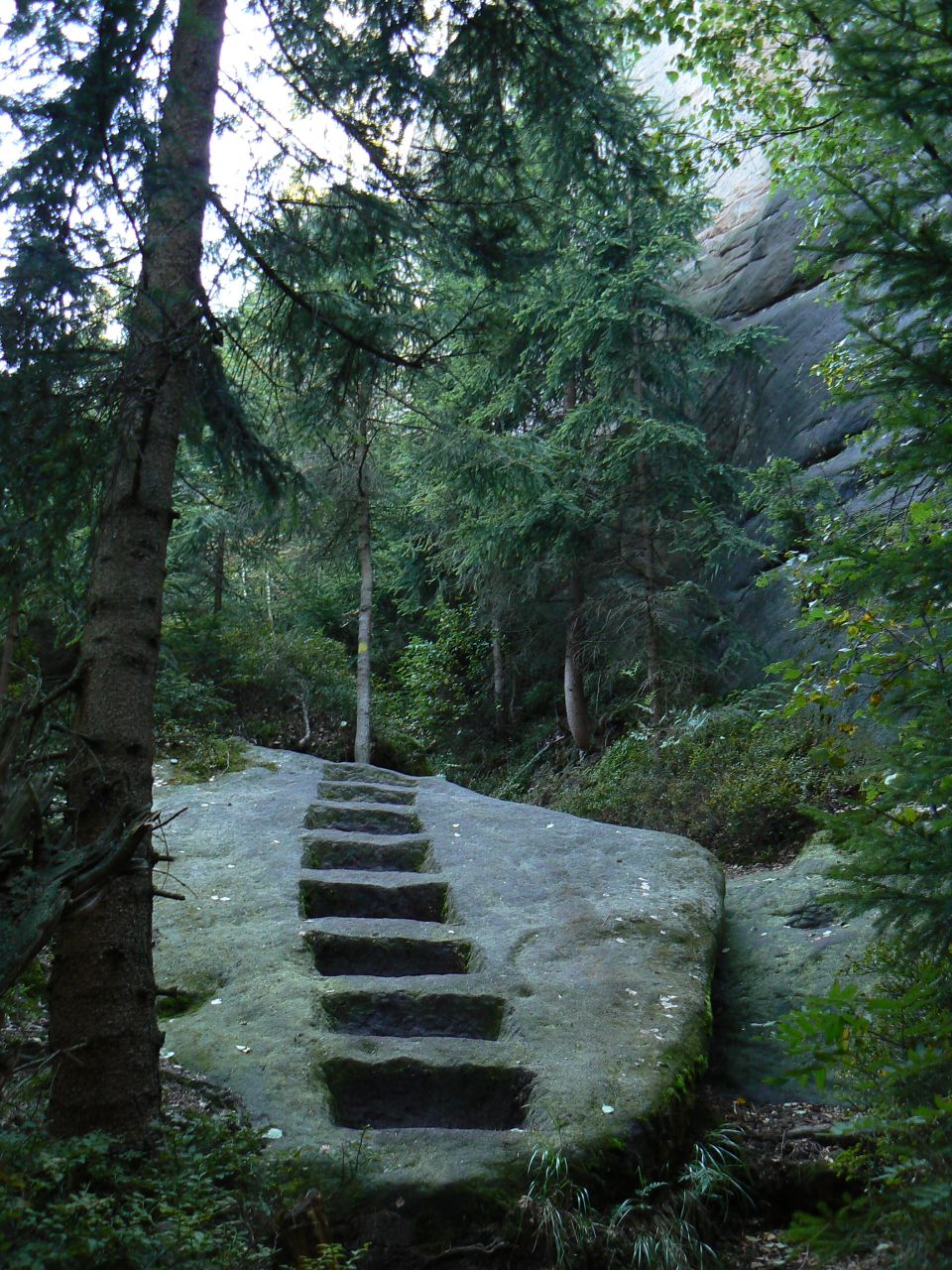 Cesta skalami je členitá - ne na převýšení, ale vede skalními průchody...