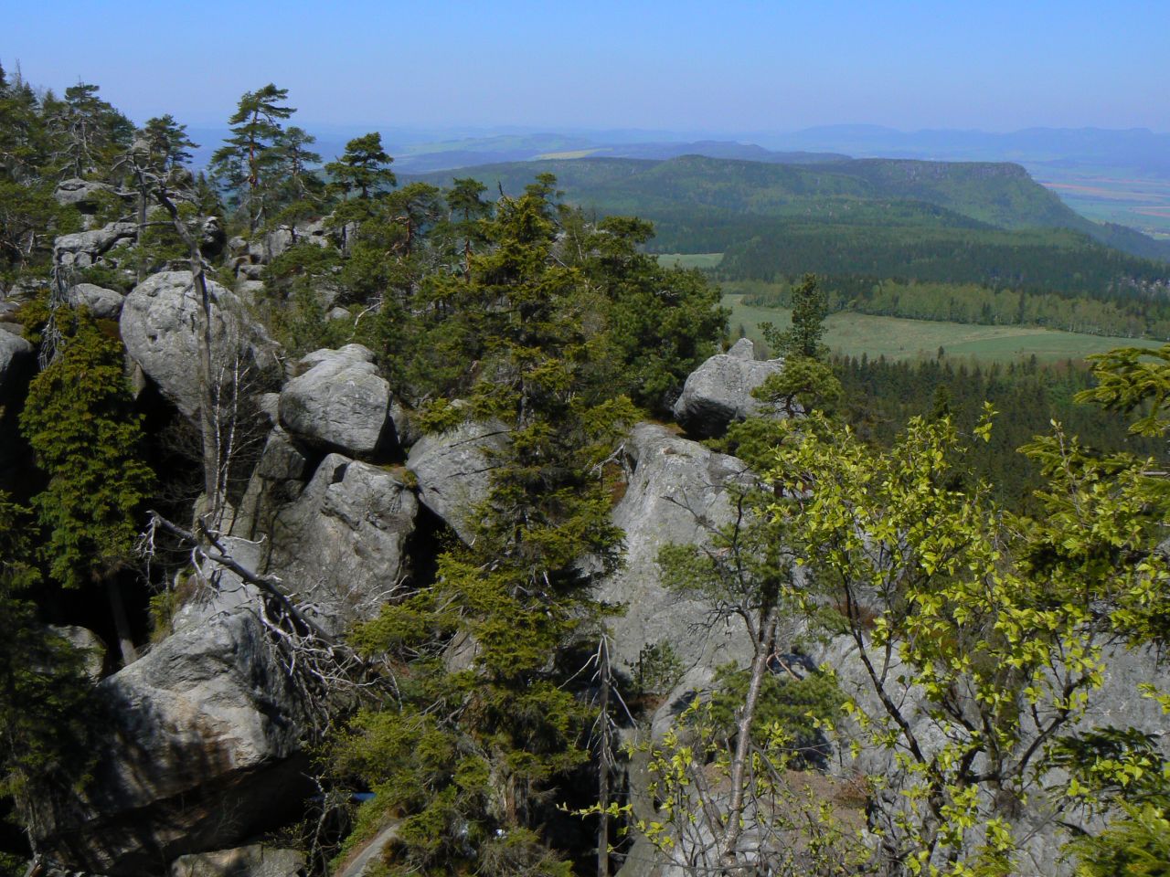 Další cesta nás vede po hraně skal a občasné úzké odbočky vedou na další skály s krásnými výhledy na Hejšovinu a Bor.