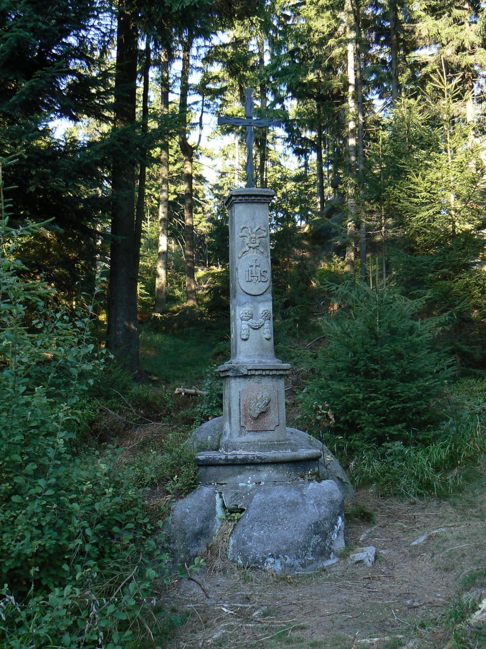 Opouštíme skalní město na Božanovském Špičáku a malý kousek cesty nás přivádí až do sedla u Pánova kříže, kolem kterého prochází široká Vambeřická cesta, jíž kdysi chodila procesí do prolaveného poutního místa Vambeřice. Na širokém prostranství u Pánova kříže se věřící modlili a odpočívali před další cestou.