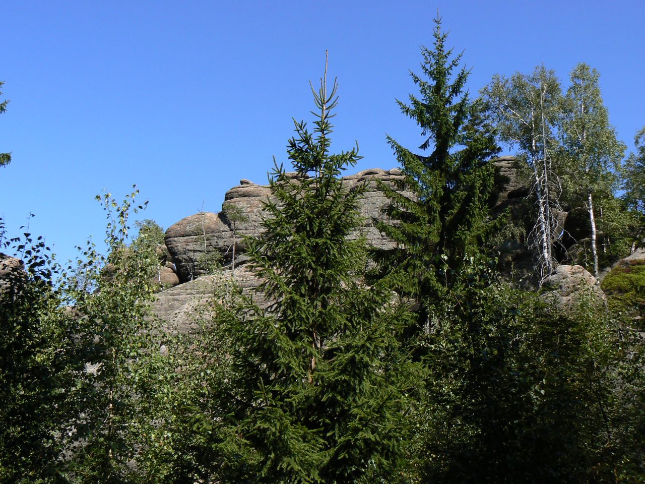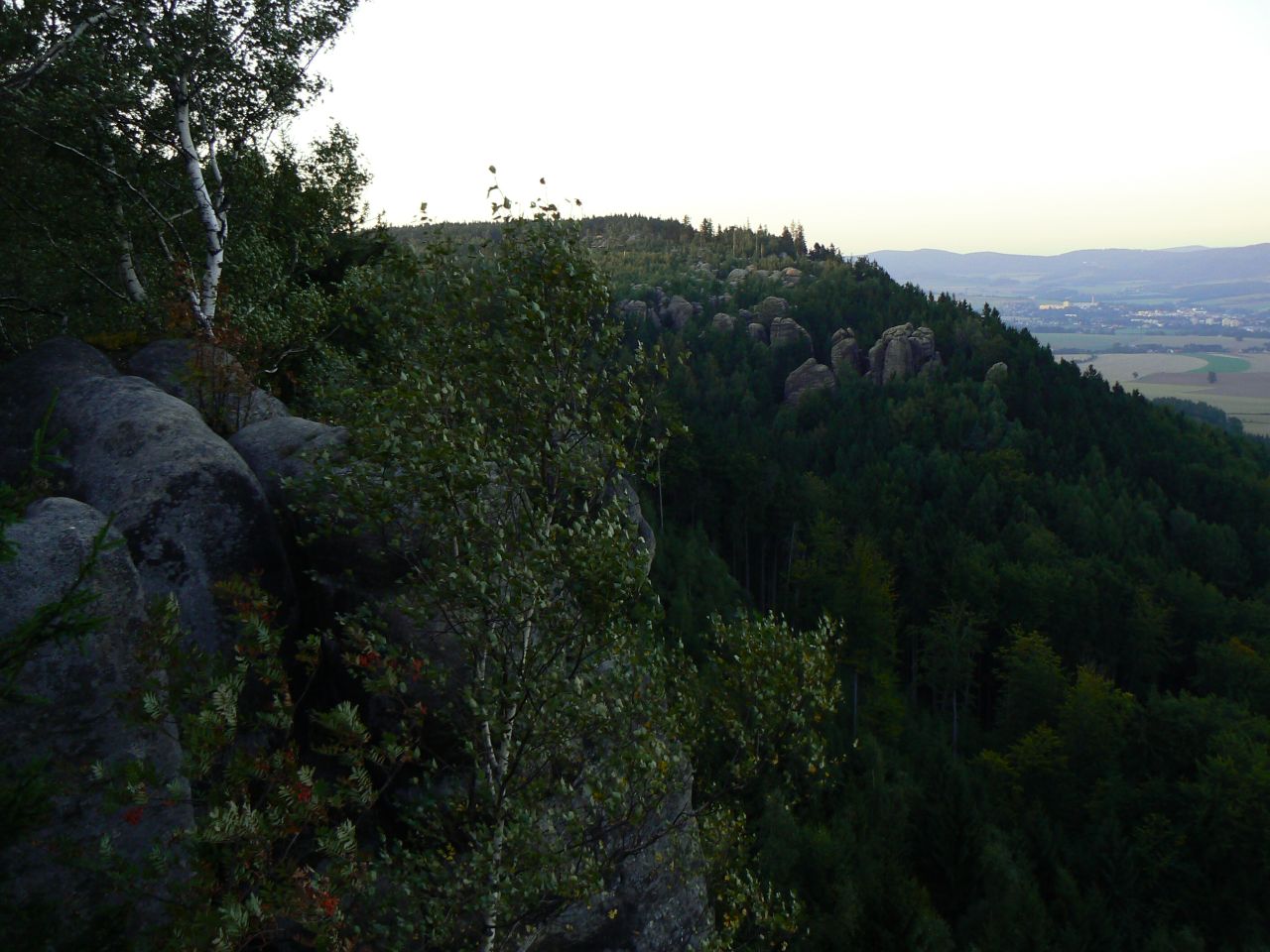 (Pokud by někdo mou stránku znal skutečně zpaměti a připadalo mu, že podobný obrázek už na ni někde viděl, tak má pravdu - ze stejného místa je pořízený pěknější obrázek Broumovské stěny ve fotogalerii Romantické cesty.)