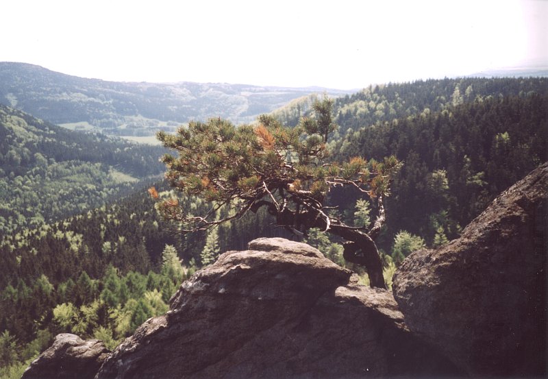 Krásné výhledy však nejsou jediným důvodem, proč tu obcházím každý kout skal. Někde tady jsem si totiž kdysi v červnu 2005 vyfotografoval tuhle nádhernou borovičku.
