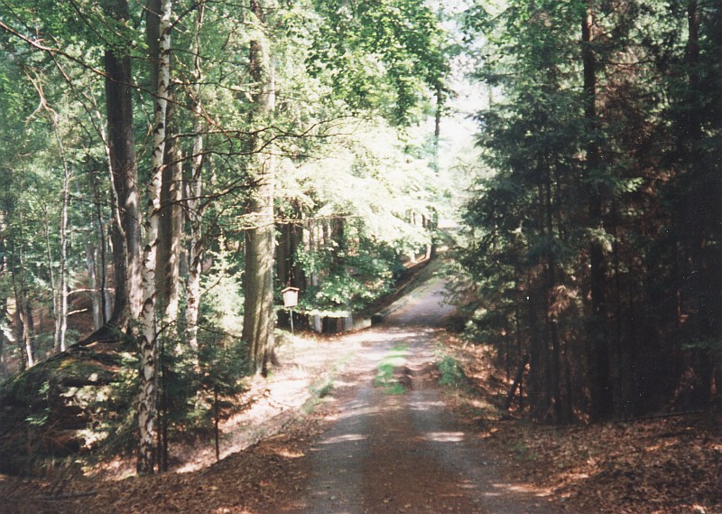 na silnici do Hradčan. Po ní se vydáme vlevo, až dojdeme k osamělému stavení jménem hájovna Trojzubec. Kousek