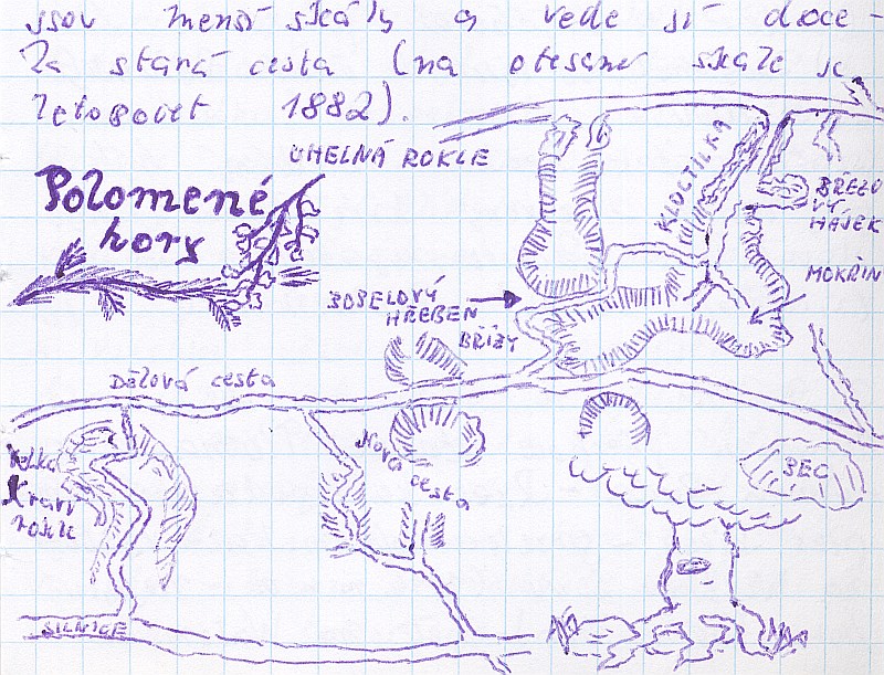 kousek cesty odtud. Polomené hory sice nenabízejí žádné ohromující výhledy, ale je to kraj ticha, starých