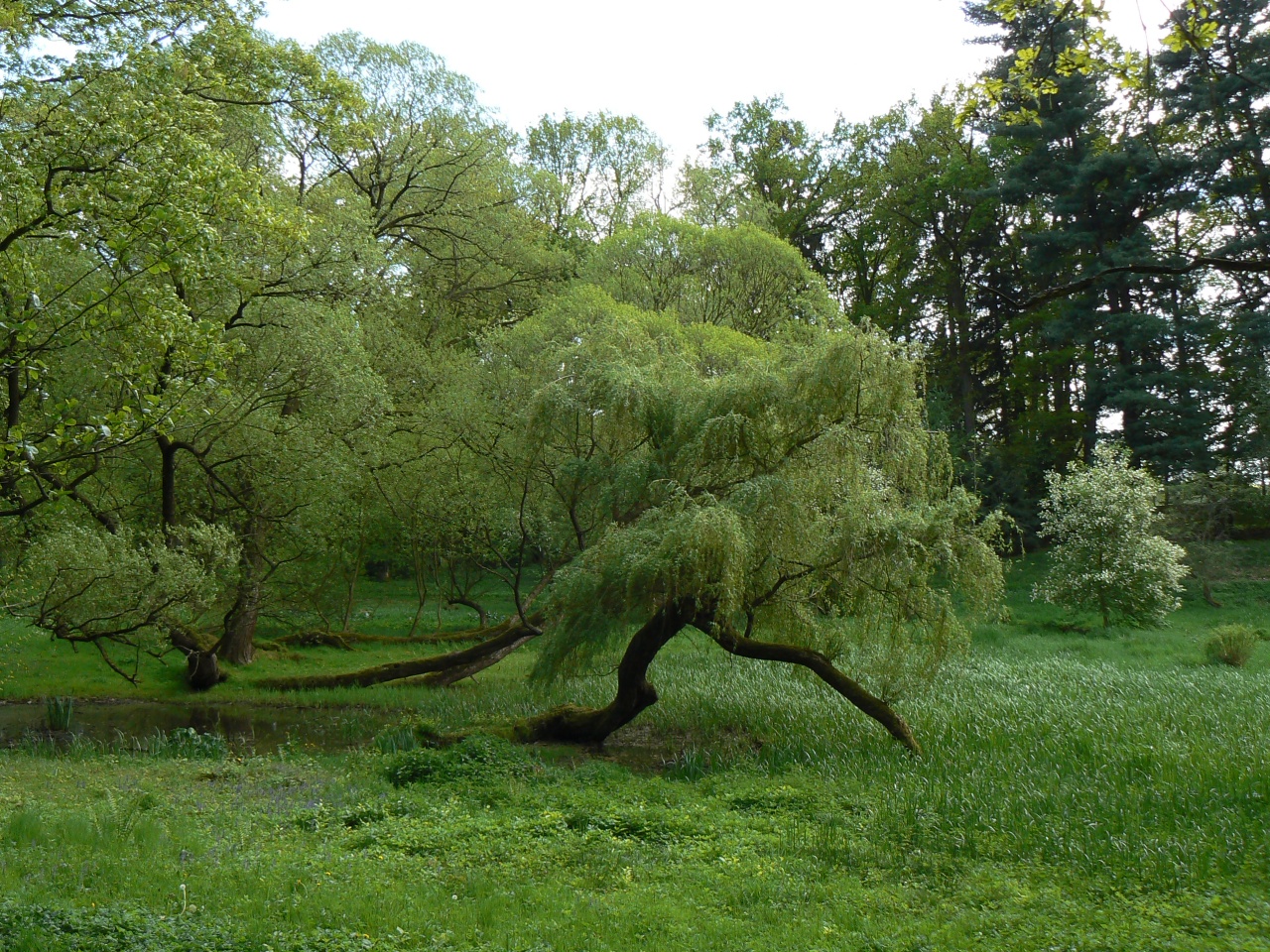 „V té zahradě je náhodou i studna s černou mříží a stará vrba nad vodou, co v hladině se zhlíží.“ To tahle nádherná smuteční vrba je důvodem, proč si tady vždycky vzpomenu na tuhle písničku z pohádky Šíleně smutná princezna, i když ta je zpívaná v krásné staré zahradě u zámku Blatná.