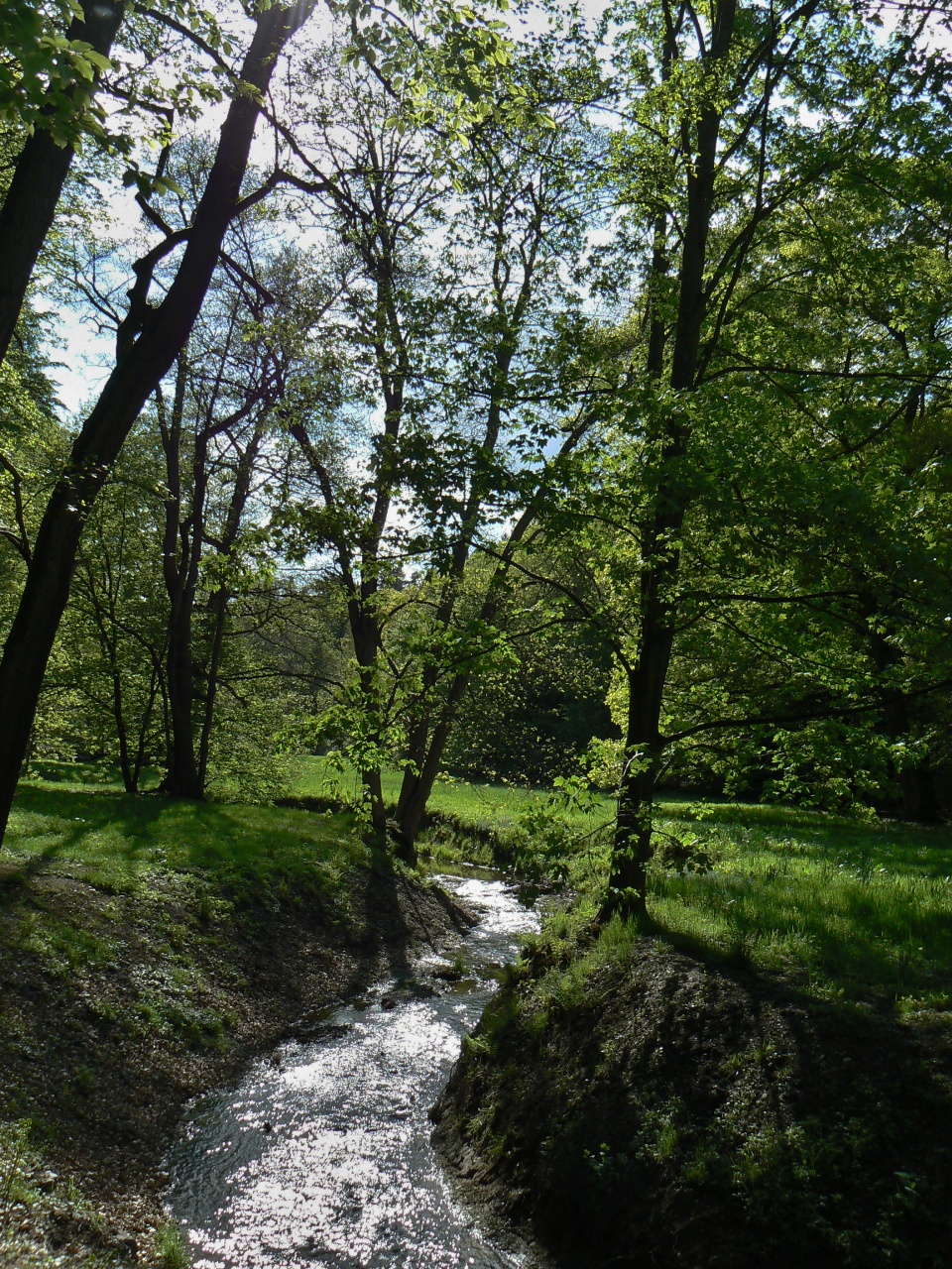 Cesta nás vede dál skrz lesnatou část parku a poté lučinami kolem klidného toku Botiče.