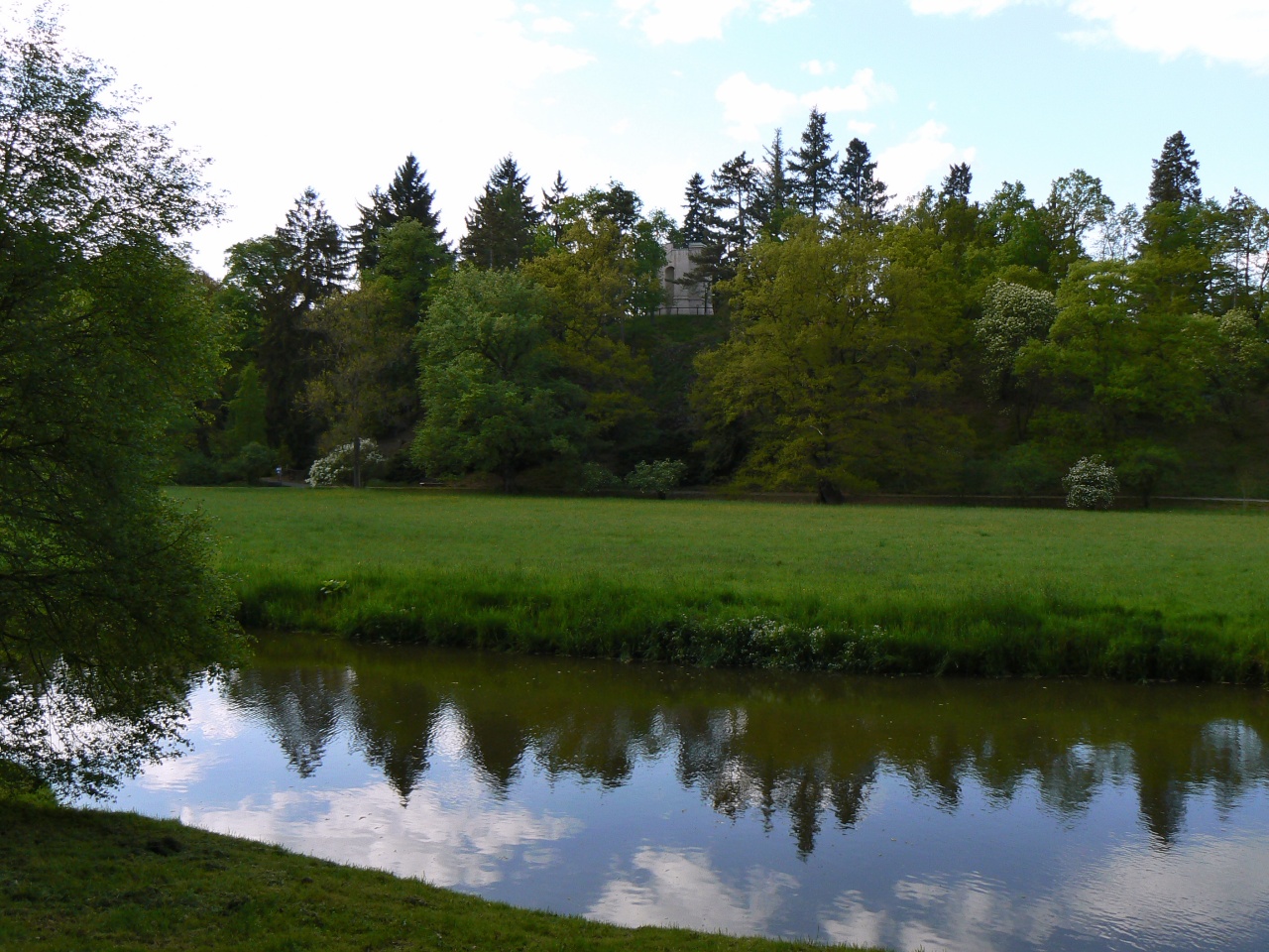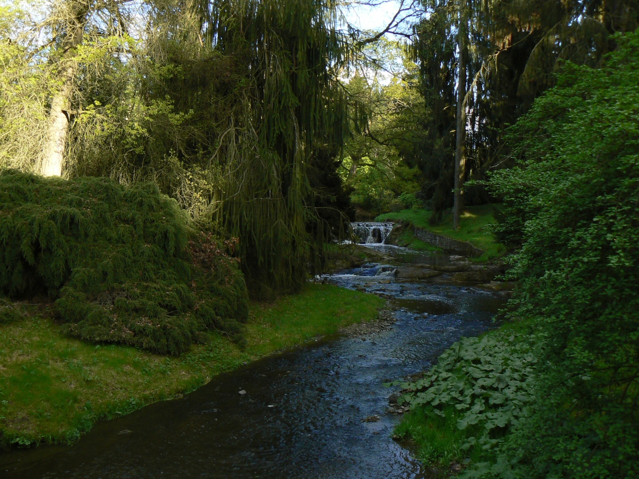 Od vodopádu se už vracíme zpátky k zámku, tentokrát však ne cestami nad údolím, zpátky jdeme po proudu Botiče, s jehož tokem si tady lidé věru vyhráli. Vytvořili tady různé zajímavé zátočiny a zákruty, prostřednictvím malých splávků je tu víc vody a Botič vypadá větší a tady dokonce jeho vody obklopují docela velký ostrůvek.