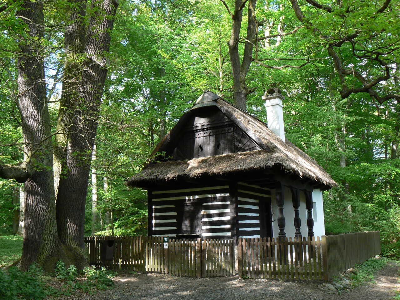 Tahle maličká chaloupka je vzpomínkou na úžasnou akci, která se jmenovala Národopisná výstava českoslovanská a lidé ji mohli navštívit v Praze v roce 1895. Musel to být určitě zážitek. Když skončila, chaloupky z výstavní vesnice skončily asi spíš špatně než dobře, jen Česká chaloupka měla šťastnější osud - pan hrabě Arnošt Emanuel Silva-Tarouca si ji koupil a díky němu ji tu máme dodnes.