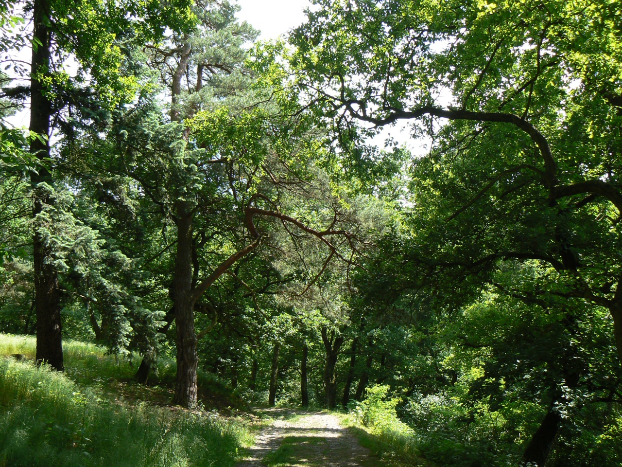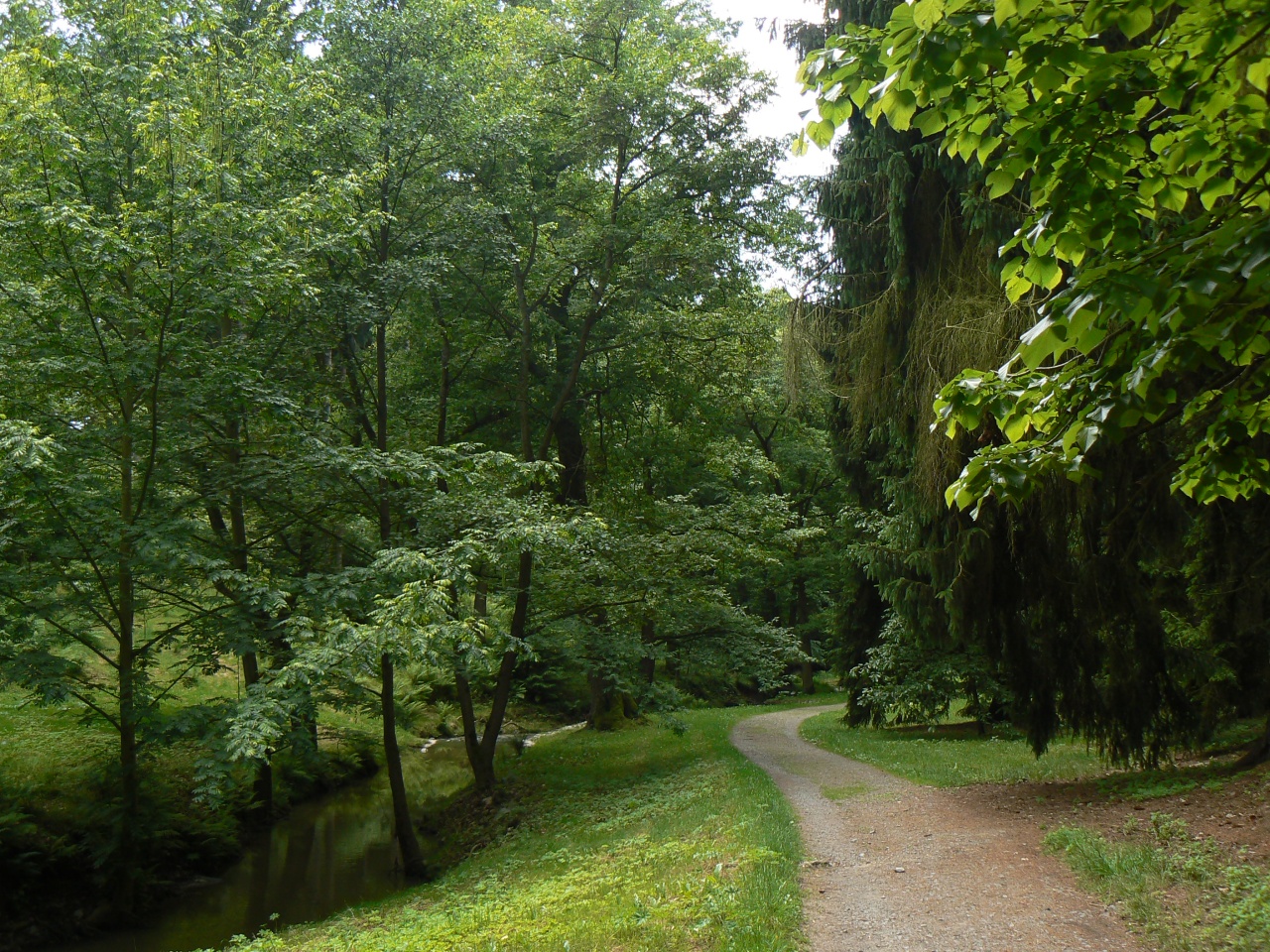 Mírně nás krásná cesta vede pořád dolů, až nás zavede znovu do údolí Botiče, do jedné z nejzazších částí parku.