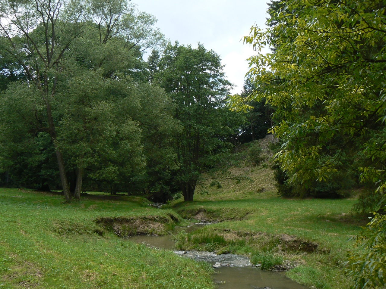 Vcházíme do krásných zelených luk, kde od levé strany z mělkého údolí přitéká Zdiměřický potok.