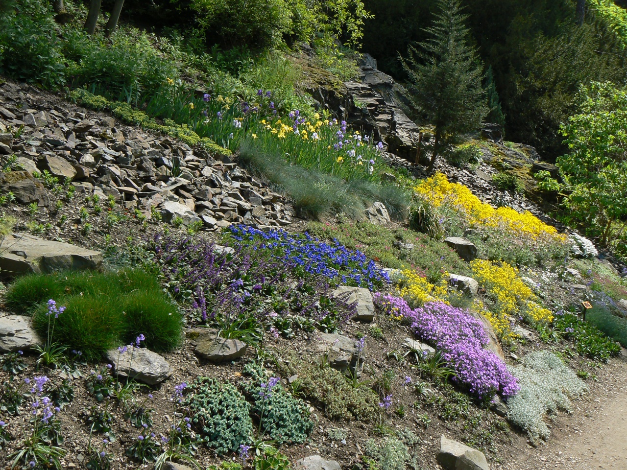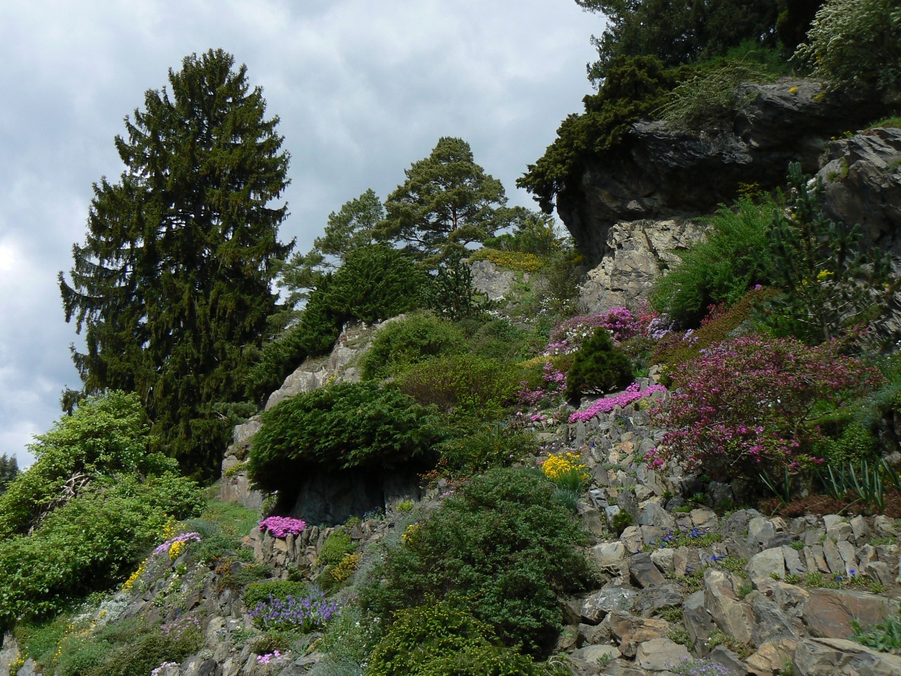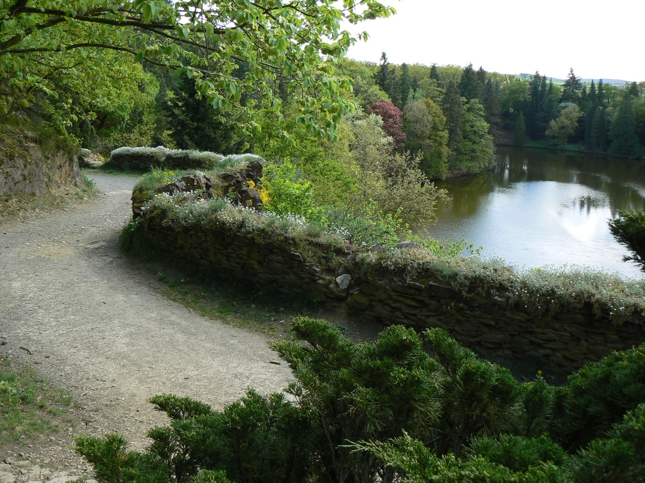 Cestička nás vede pod zámkem až tam, kde se zdvíhá prudce nahoru příkrá stráň. Hrabě Arnošt Emanuel Silva-Tarouca si vybral místo pro zahradu dobře - rozkládá se v krásném údolí potoka Botiče, do kterého přitéká několikero postranních přítoků - získal tak neuvěřitelně pestré prostředí pro pěstování rostlin - rybníky a jejich močálovité konce, úrodné údolní nivy a mírné stráně porostlé lesem a také prudké skalnaté stráně, kam se opírá sluníčko. Ty jsou pravým rájem skalniček a nejrůznějších stepních a slunce milujících rostlin.