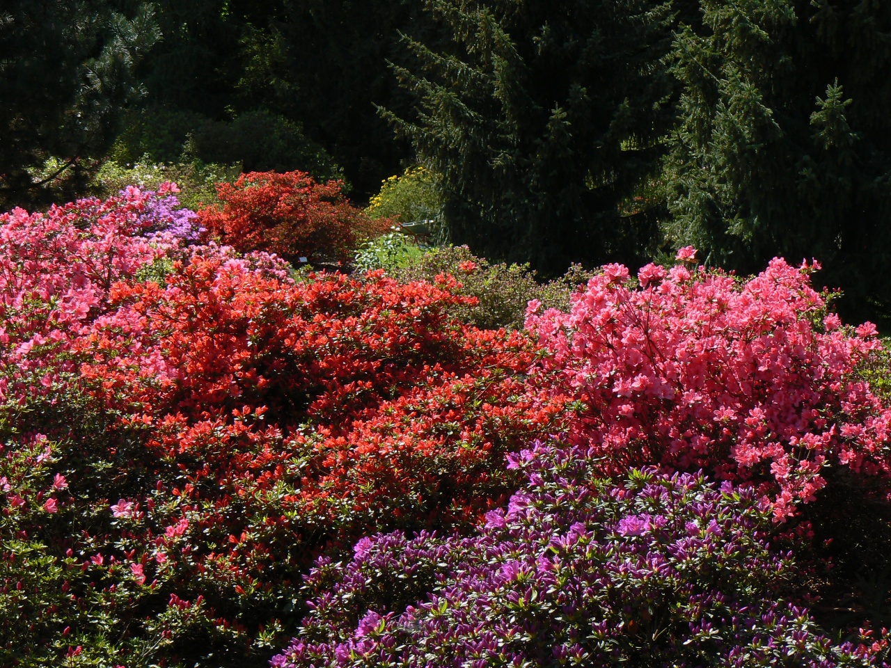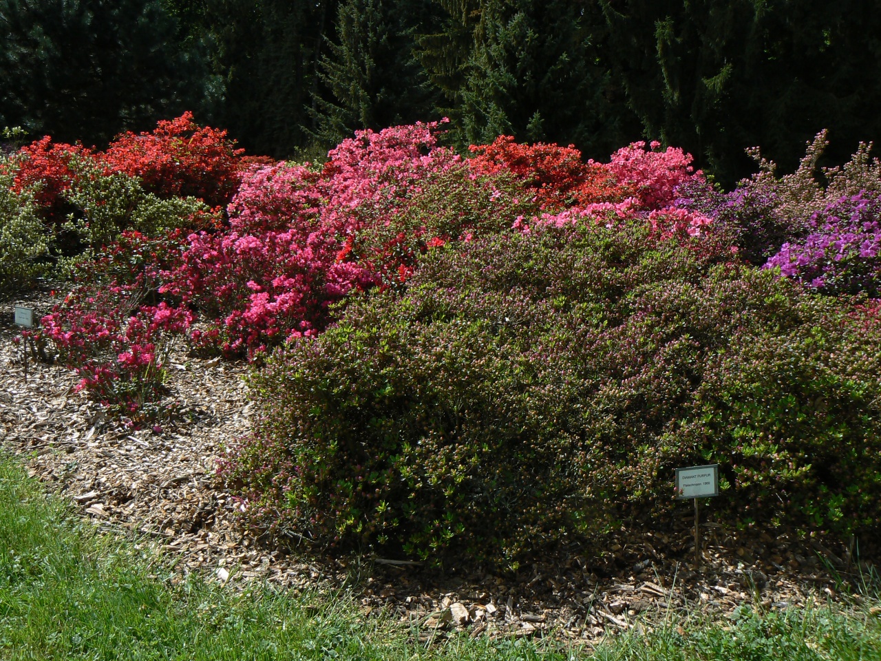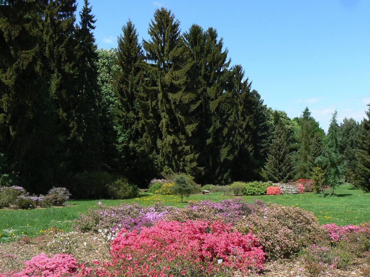 Zatímco Průhonický park byl navržen tak, aby připomínal přírodu a zároveň byl co nejkrásnější, Botanická zahrada je také krásná, ale pojatá jinak. Jsou tu záhonky s různobarevnými kvetoucími azalkami a rododendrony, v tomhle období zářící nádhernými barvami.