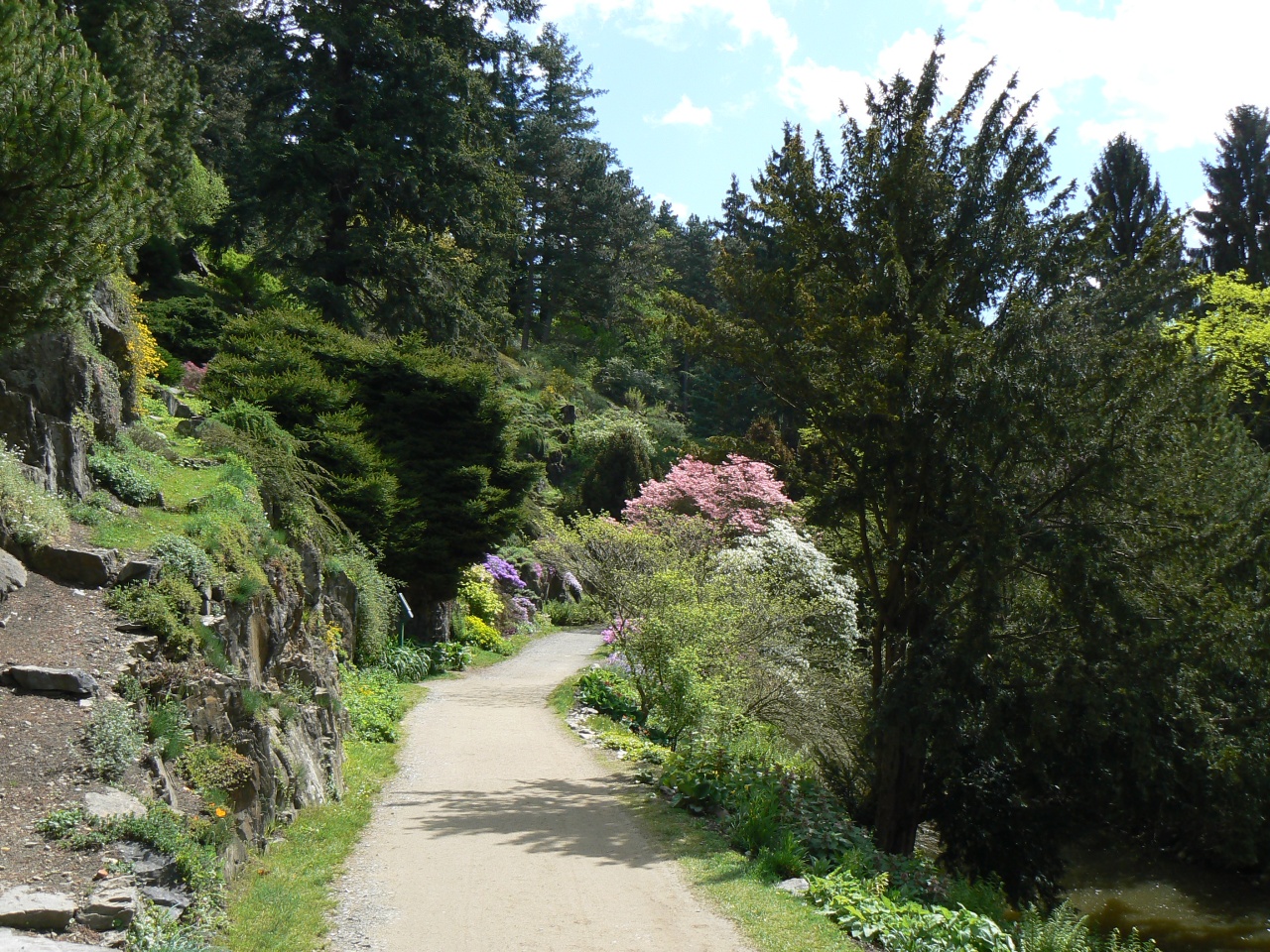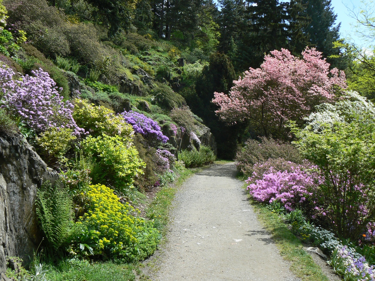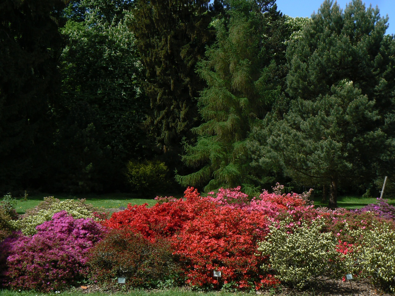 Zatímco Průhonický park byl navržen tak, aby připomínal přírodu a zároveň byl co nejkrásnější, Botanická zahrada je také krásná, ale pojatá jinak. Jsou tu záhonky s různobarevnými kvetoucími azalkami a rododendrony, v tomhle období zářící nádhernými barvami.