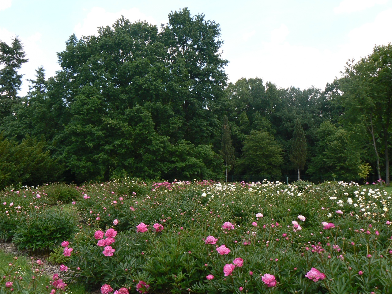 ...obrovský záhon s neuvěřitelným množstvím barev a tvarů květů pivoněk...