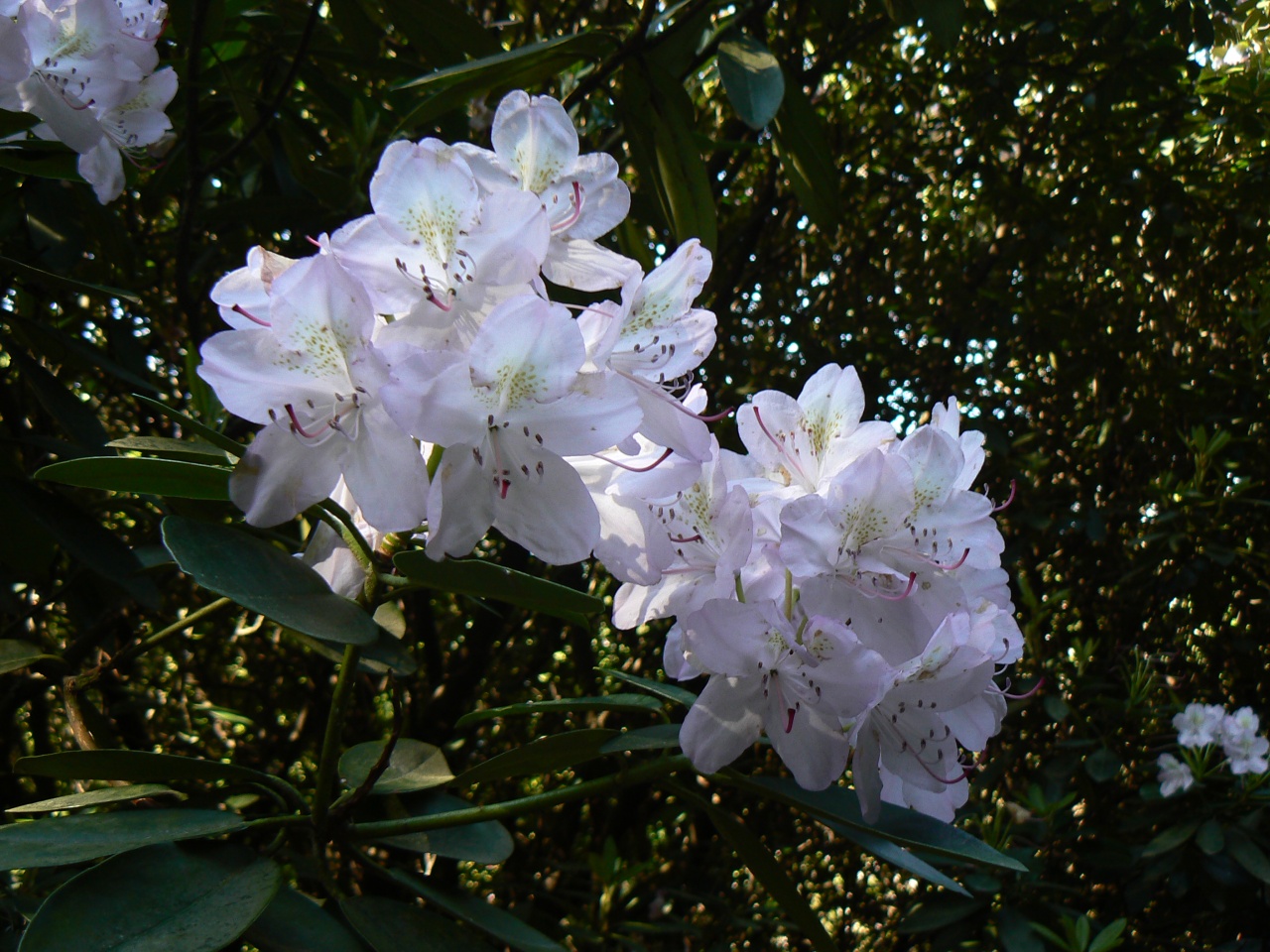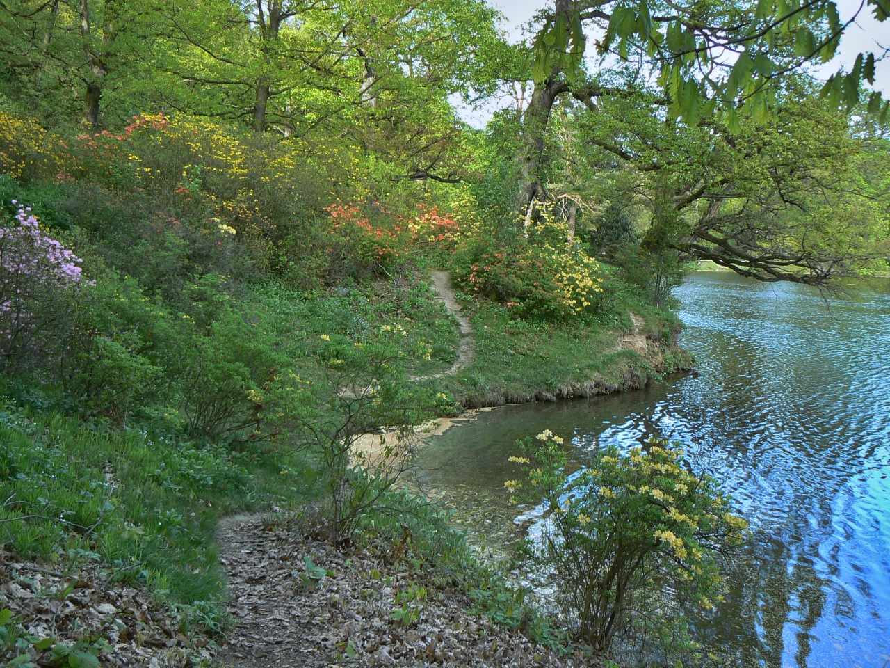 Cesta k němu je obklopená těmi nejkrásnějšími starými rododendrony.
