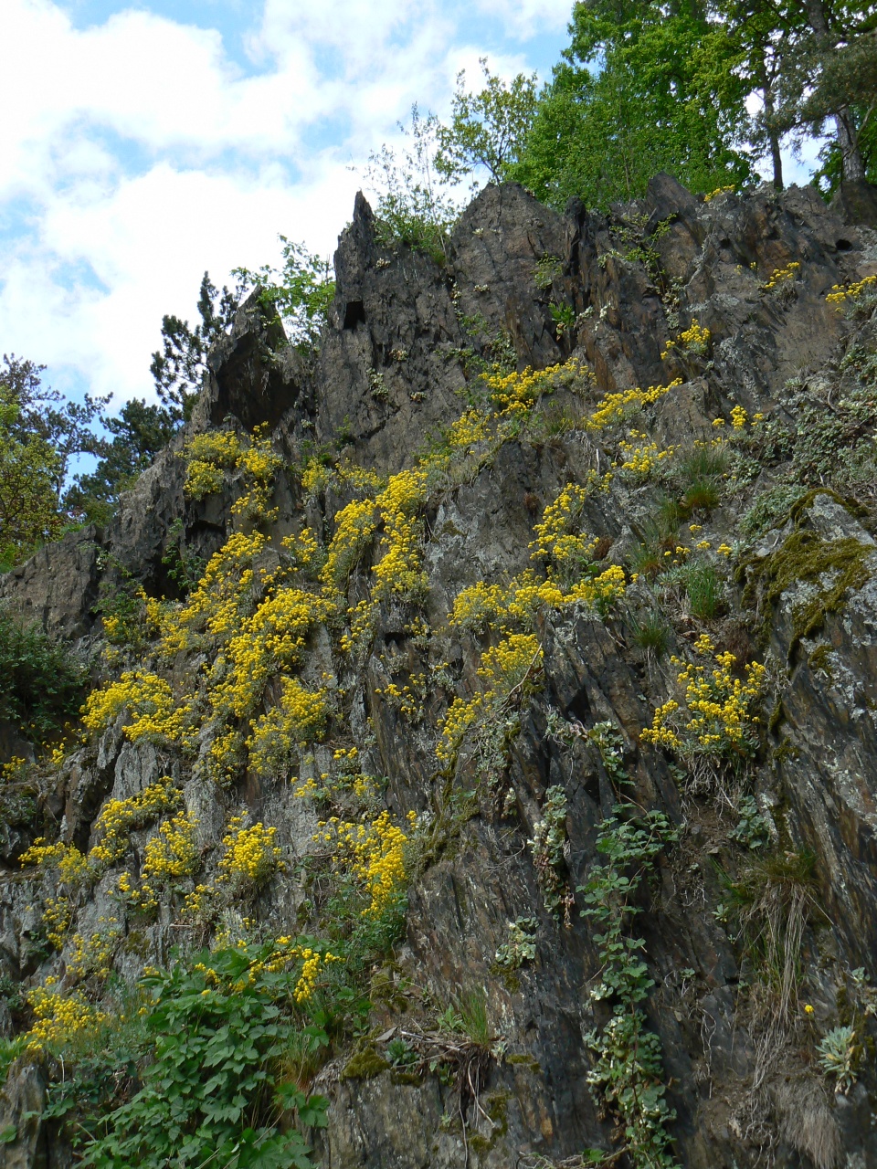 Na zídkách a okolních skalách rostou obrovské bochance nádherné žluté tařice skalní, s ní tam však roste spousta dalších rostlin, z nichž už neznám bohužel ani jednu. Tahle cesta je doopravdy nádherná, bez přehánění je to jedno z nejkrásnějších míst celého parku.