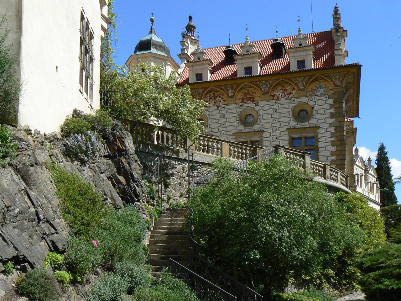 ...a vydáváme se z nádvoří po schodišti dolů, do té kouzelné zahrady.