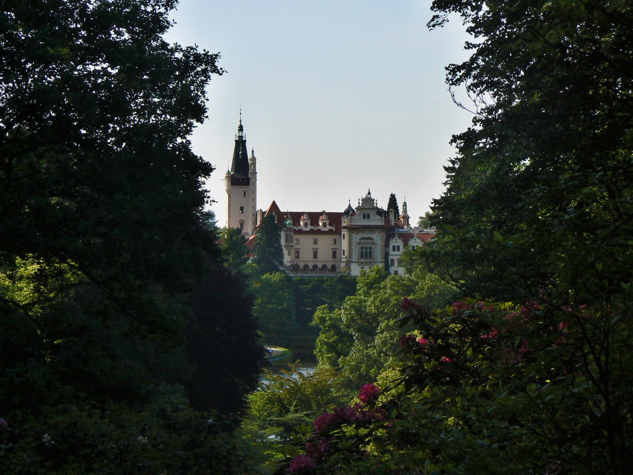 Nedaleko Glorietu je však mezi stromy a rododendrony vidět hezky zámek.