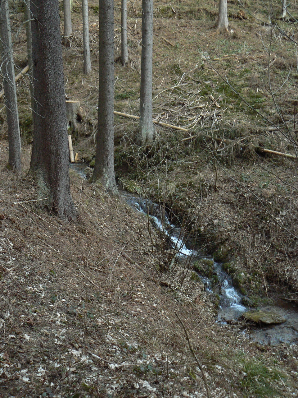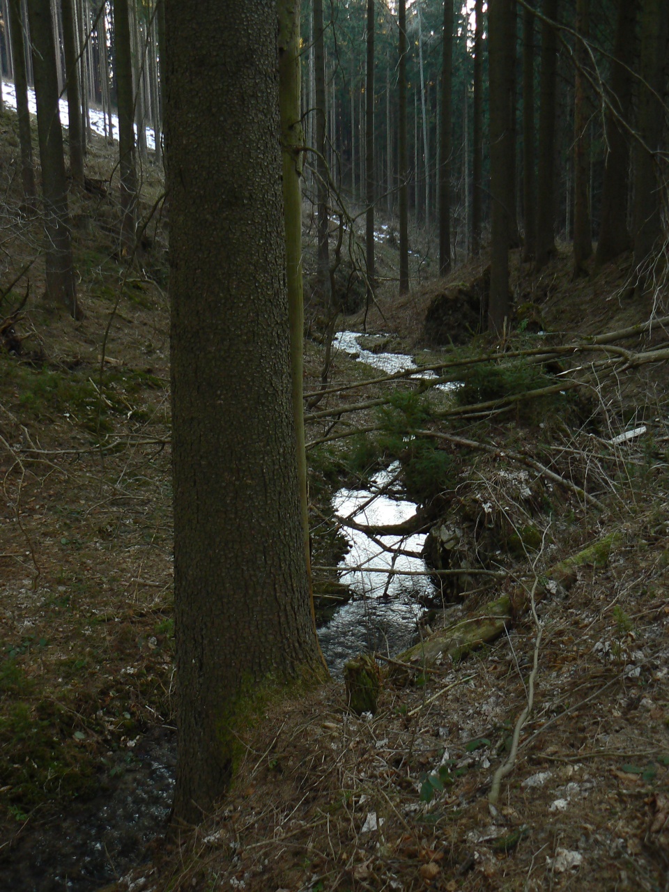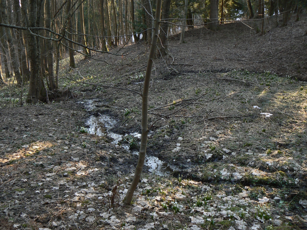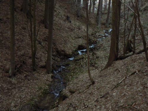 Vypadá mnohem silnější a taky krásnější než ten, kolem kterého jsem přišel, tak nemůže zůstat neprozkoumaný. Ženu se tedy s chutí podél něj znovu do téhož kopce, z něhož jsem právě sešel. Často se tu stékají různé pramínky, ale všechny většinou rychle končí někde okolo v záhonu nádherných bledulek. Jen jeden jediný pokračuje dál a dál.