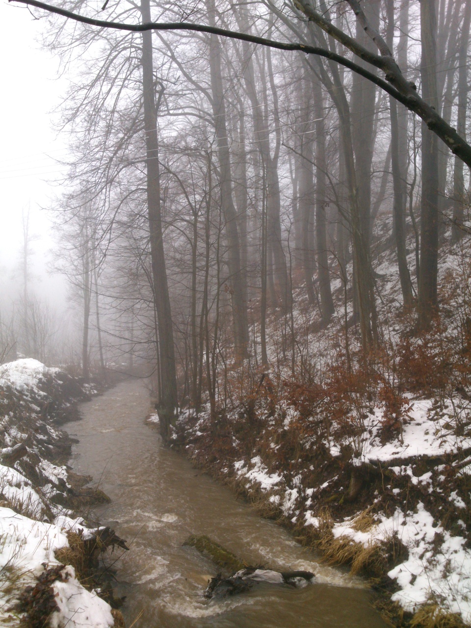 Prudce se otáčím, svaly napjaté, připravený na vše... ale za mnou nikdo není. Dívám se nahoru dolů - ale ani živá duše se nepohybuje mezi stromy v celkem přehledném lese. Otáčím se zpátky a hledím po cestě vedoucí ve stráni za potokem, ale ani po ní nikdo nejde. Mráz po mně běhá, tísnivý pocit nepřechází... připadám si tu na ráně, zranitelný... tak obejmu strom nad roklí a začnu se spouštět po její strmé stráni. Jehličky naštěstí nekloužou, jde to líp, než jsem čekal a ani ostružinové šlahouny mi naštěstí nohy nepodtrhnou, takže se bez problémů dostávám až na dno k Sovince.