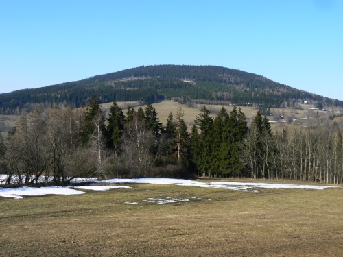 Teplé jarní sluníčko září na úplně vymeteném nebi, okolní hory oslnivě září bělostí sněhu a já stojím tady - na autobusové zastávce na rozcestí „Na Křížovkách“, v sedle mezi horou Žalý a vrchem Sovincem. Na autobus tu však nečekám, protože jsem právě jedním přijel z Vrchlabí. Nedám se po žádné ze silniček, které se odtud rozbíhají - na Benecko, do Mrklova ani do Vrchlabí. Moje cesta dnes povede cestou necestou, protože mým cílem je pramen potoka Sovinky.