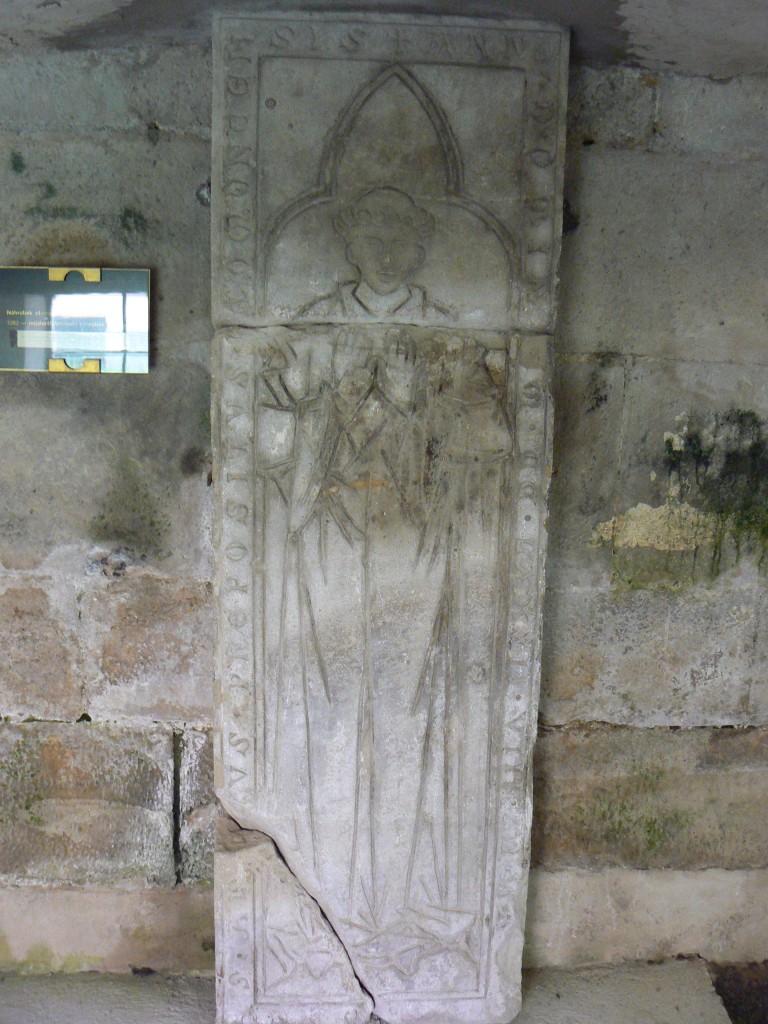 Tenhle náhrobek náleží olomouckému proboštu Alexiovi a pochází z roku 1282. Je to nejstarší datovaný náhrobek na Moravě. Ještě významnější je ale tenhle výklenek.