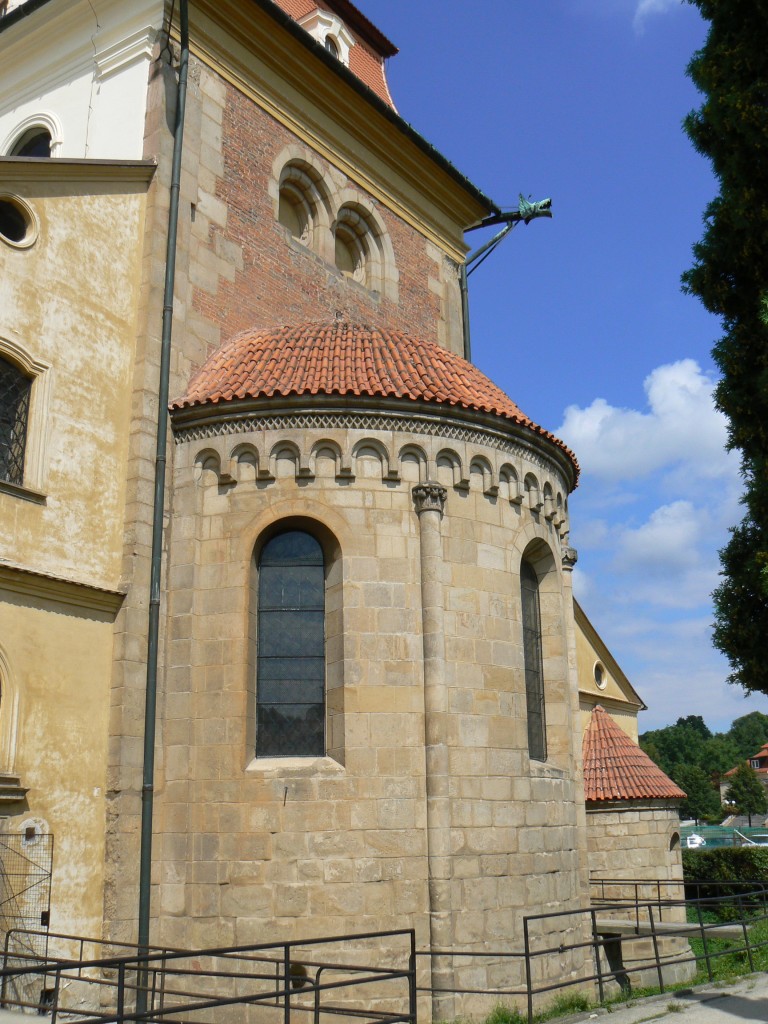 Vycházíme znovu do ambitu a s jeho koncem končí i prohlídka lapidária. Po schodech vystupujeme na povrch a vracíme kolem podélné zdi baziliky, na které je vidět spousta zazděných starých románských oken.