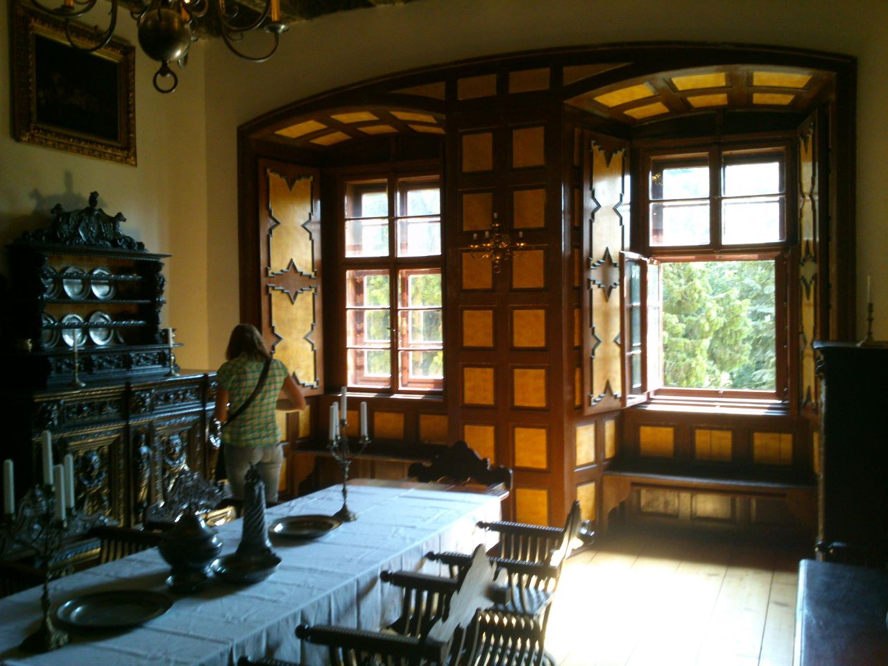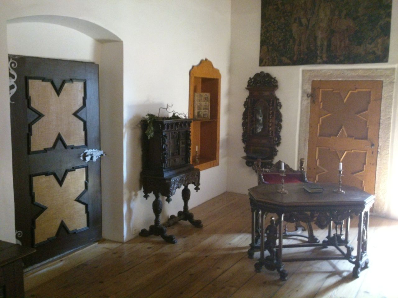 Kupuje nábytek čistě renesanční a my tu teď stojíme v místnosti, která mohla přesně takhle vypadat v době dostavby zámku v 16. století. Taková renesanční místnost je naprostý unikát - na každém zámku samozřejmě žilo panstvo, které bylo stejně tupým stádem jako my dneska a proto v době baroka vyházelo renesanční nábytek, protože nebylo dost "in" a "trendy", barokní nábytek nahradil klasicistní, po něm empírový nebo biedermeierový... výsledkem je, že až na čestné výjimky pochází na našich zámcích nábytek z 19. století, některé kusy nábytku jsou barokní... ale renesančního nábytku je pomálu. O to víc překvapí takováhle nádherná renesanční místnost.