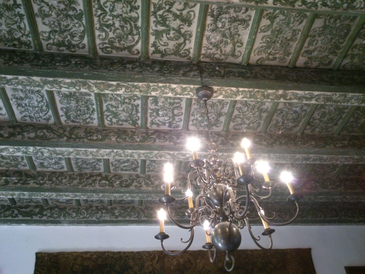 Další krásu spatříme, když pozvedneme oči ke stropu, který je zcela původní, nádherný malovaný renesanční záklopový strop.