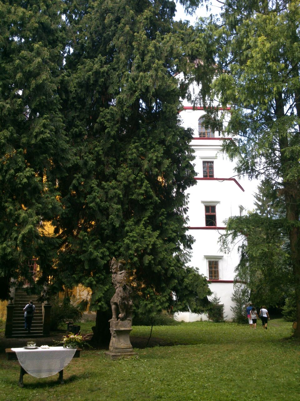 Jsou takové romantické duše, kteří nechtějí mít svatbu v chladné obřadní síni ani v sebehonosnějším sále, ale pěkně venku, na sluníčku pod modrým nebem. Na zámku v Radimi splní takové přání - vynesou ven malý stoleček, ozdobí ho kytičkou, víno připraví i hezký malý polštářek, na který se dávají prstýnky... a můžete mít svatbu na tomhle krásném místě, mezi sochami a pod korunou dvou nádherných starých stromů, které stojí z každé strany cesty u paty zámeckého schodiště.