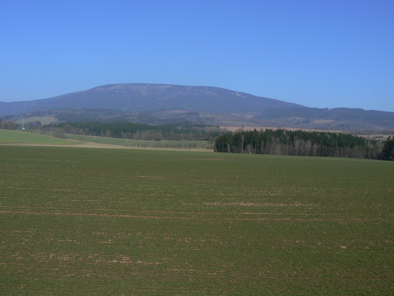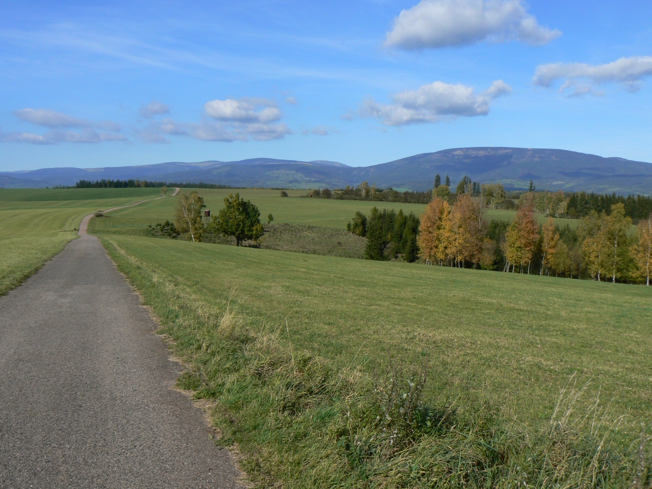 Jednotvárnost krajiny vyvažují nádherné výhledy na Krkonoše.