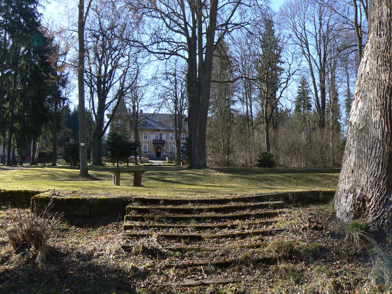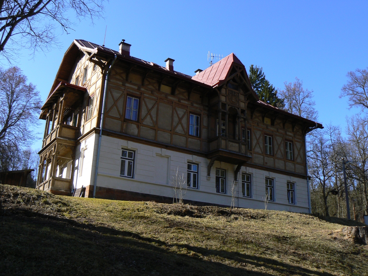 Za silnicí stojí velká Vila Marie, která už byla docela zchátralá, ale po požáru byla s výjimkou fasády hezky opravená.