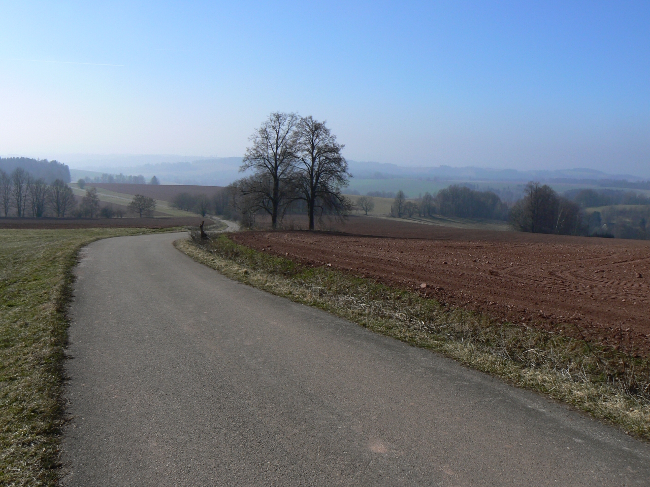 ...zbývá nám už jen kousek cesty na křižovatku polních silniček u Janovic, na které se vydáme doprava po silničce přímo do údolí ke kostelu.