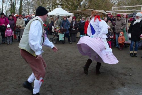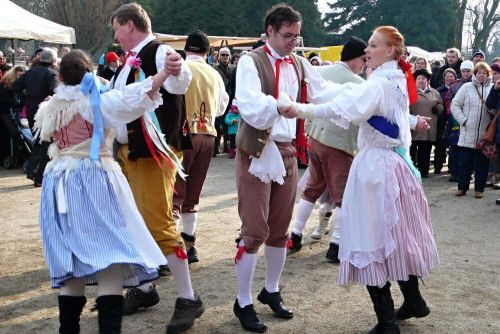 Páni, to je lidí! Sluníčko putuje výš po světle modrém zimním nebi a takové krásné počasí přilákalo spustu obecenstva. Přicházíme do širokého kruhu, který tu pro nás lidé nechali, zpěvačky se dávají do zpěvu a my do tance.